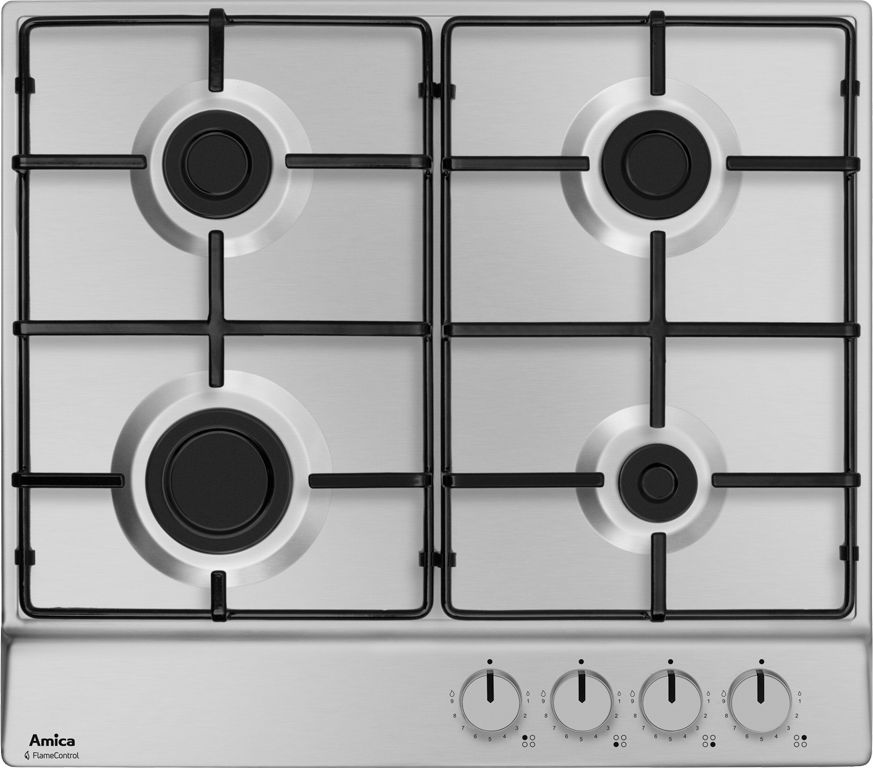 Płyta gazowa firmy Amica wykonana ze stali nierdzewnej szczotkowanej – inox. Płyta posiada emaliowane dzielone ruszty, zapalacz gazu w pokrętle, zabezpieczenie przeciwwypływowe gazu oraz cztery palniki gazowe.