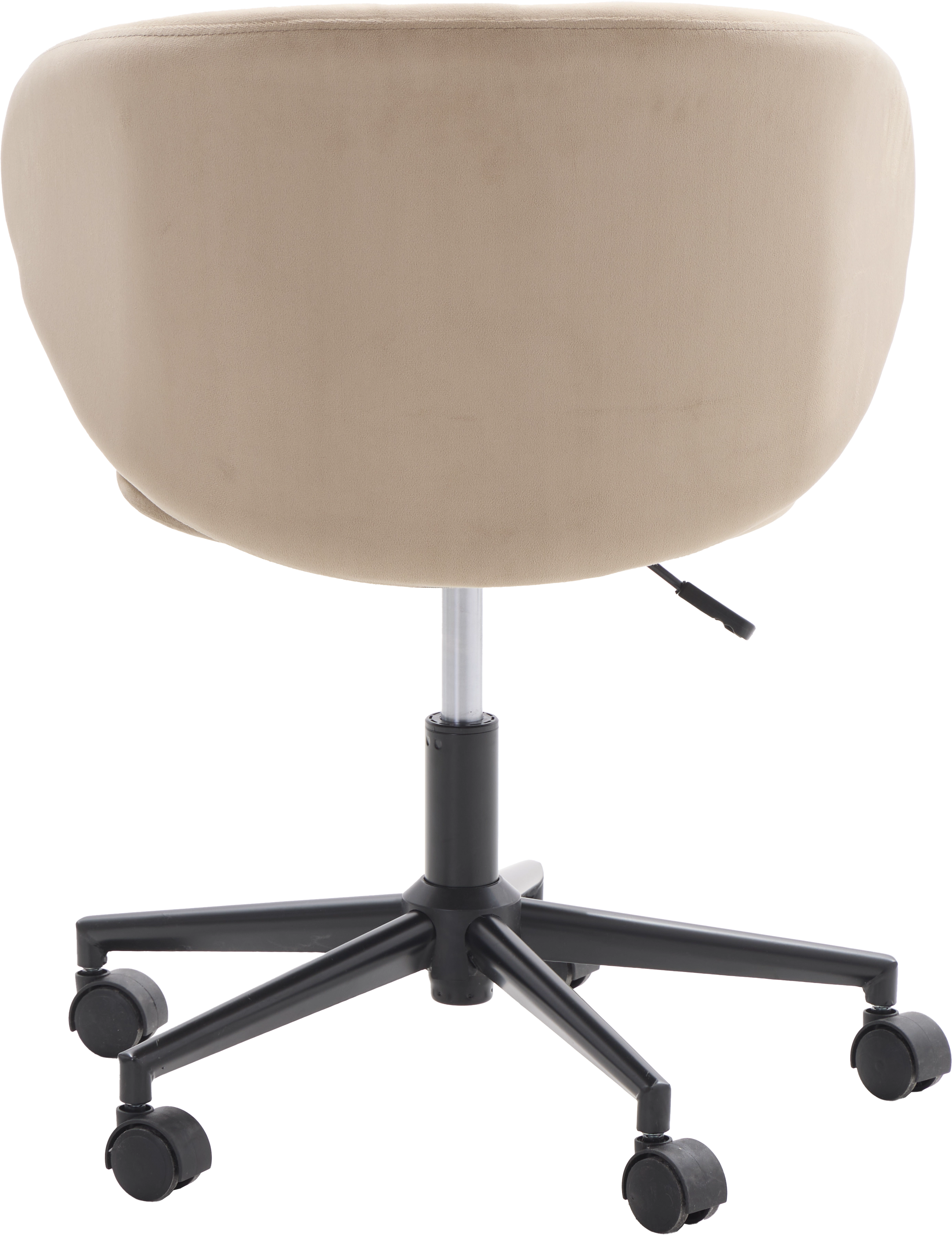 Krzesło biurowe MAVI 17 w kolorze beżowym to elegancki i wygodny mebel idealny do domowego biura, gabinetu lub pokoju młodzieżowego. Tapicerowane miękkim materiałem w jasnym odcieniu, osadzone na czarnej nodze z kółkami i regulacją wysokości (73,5–83 cm), zapewnia komfort oraz swobodę ruchu. Wymiary 60,5 x 60 cm sprawiają, że krzesło jest kompaktowe, a jednocześnie stabilne. Beżowy kolor dodaje wnętrzu lekkości i harmonijnie współgra z różnymi stylami aranżacyjnymi.