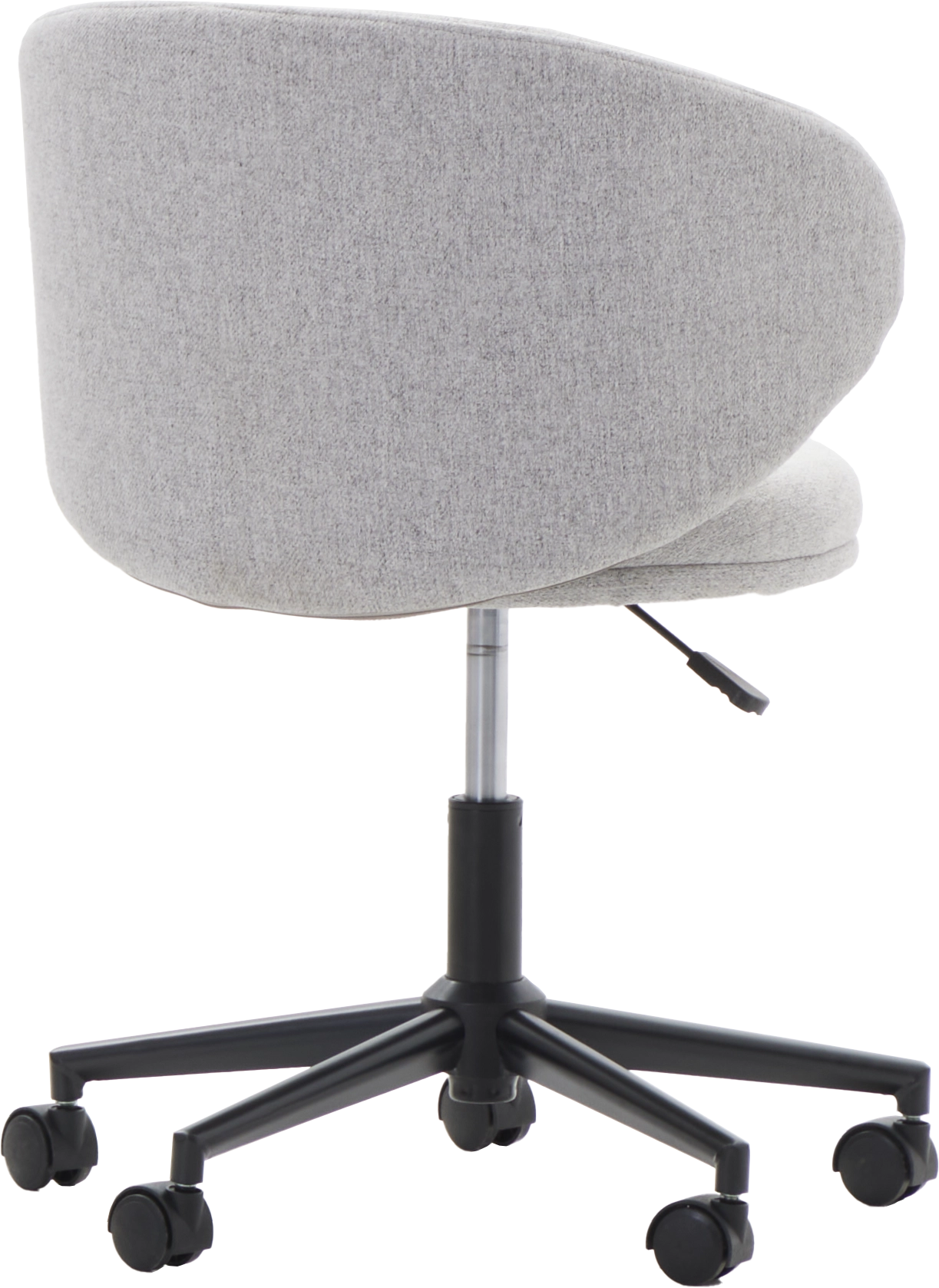 Krzesło biurowe "MAVI"-17 w kolorze jasny szary to doskonałe połączenie stylu i funkcjonalności. Tapicerowane miękką tkaniną w modnym, neutralnym odcieniu, świetnie wpisuje się zarówno w domowe biuro, jak i nowoczesne przestrzenie pracownicze. Czarna podstawa na kółkach nadaje konstrukcji lekkości i zapewnia mobilność, a możliwość regulacji wysokości (od 73,5 do 83 cm) pozwala dopasować krzesło do indywidualnych potrzeb użytkownika. Wymiary: 60,5 x 60 x 73,5–83 cm. To praktyczne i wygodne rozwiązanie dla osób ceniących komfort i estetykę w miejscu pracy.