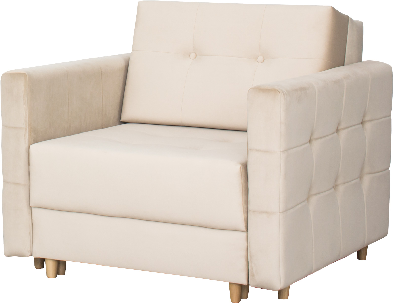 Piękny i komfortowy fotel rozkładany Paris o nowoczesnym designie, wspaniale wkomponuje się w nowoczesne jak i klasyczne wnętrza. Wykonany z delikatnego pikowanego materiału, z nóżkami w skandynawskim stylu. Powierzchnia spania: 72cm x 198cm.