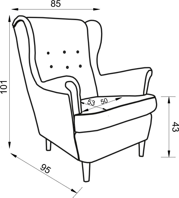 Fotele uszaki również z kolekcji Werina z wysokim i wygodnym oparciem, dopasowanymi podłokietnikami oraz bukowymi nóżkami w stylu skandynawskim. Dostępne w szerokim wyborze kolorów oraz materiałów obiciowych.