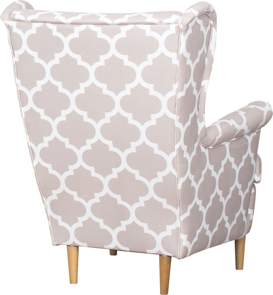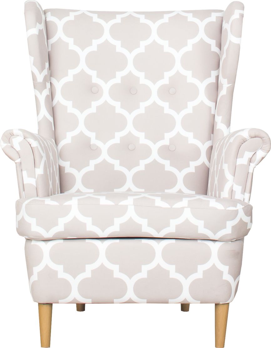 Fotel Werina w kolorze Maroko beżowy to elegancki mebel, który wprowadza do wnętrza subtelność i stylowy akcent. Charakteryzuje się wysokim oparciem oraz wygodnym, przestronnym siedziskiem, zapewniającym komfort użytkowania. Tapicerka w beżowym odcieniu nadaje fotelowi elegancji i łagodnego wyglądu, doskonale współgrając z różnymi stylami aranżacyjnymi. Fotel Werina w kolorze Maroko beżowym będzie doskonałym wyborem do salonu, pokoju czy gabinetu, dodając przestrzeni zarówno funkcjonalności, jak i wyjątkowego charakteru.