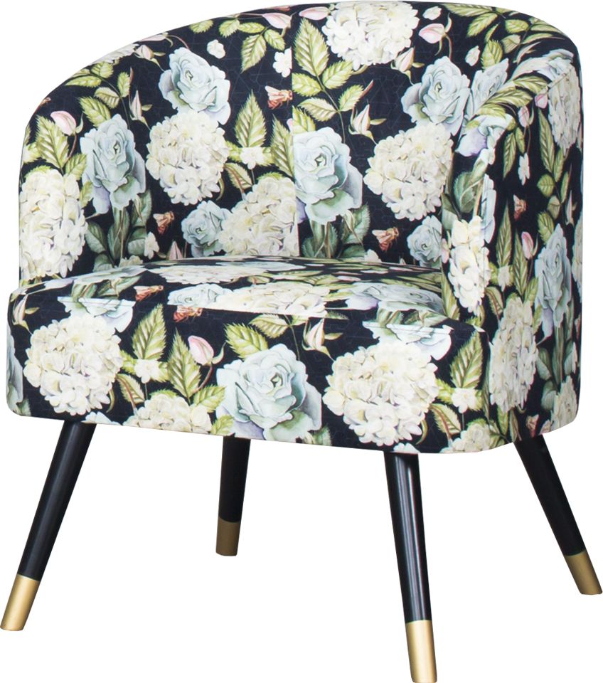 Unikatowy, efektowny fotel Fiorenti wprowadzi do wnętrza nietuzinkowy design. Klasyczna czerń połączona z kwiatowym wzorem to ponadczasowa stylistyka. Bardzo wygodny, z nóżkami w kolorze czarno-złotym, wykonany z miękkiej w dotyku tkaniny uprzyjemni odpoczynek.