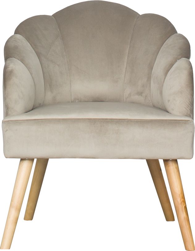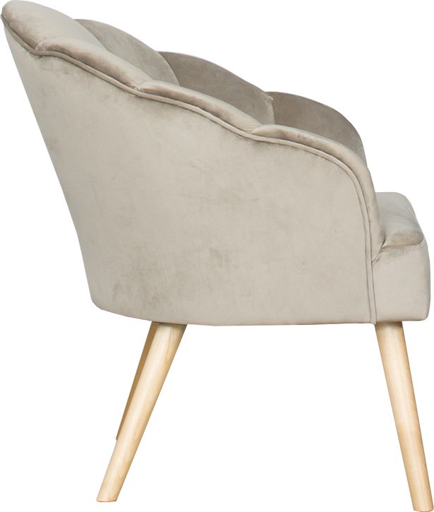 Fotel z kolekcji Malavi, charakteryzujący się oparciem w kształcie muszli, to stylowy i komfortowy element wyposażenia wnętrza. Wykonany z miękkiego pluszu, zapewnia wygodę podczas siedzenia. Drewniane nogi dodają elegancji i stabilności. Maksymalne obciążenie fotela wynosi 120 kg, co sprawia, że jest solidny i trwały.