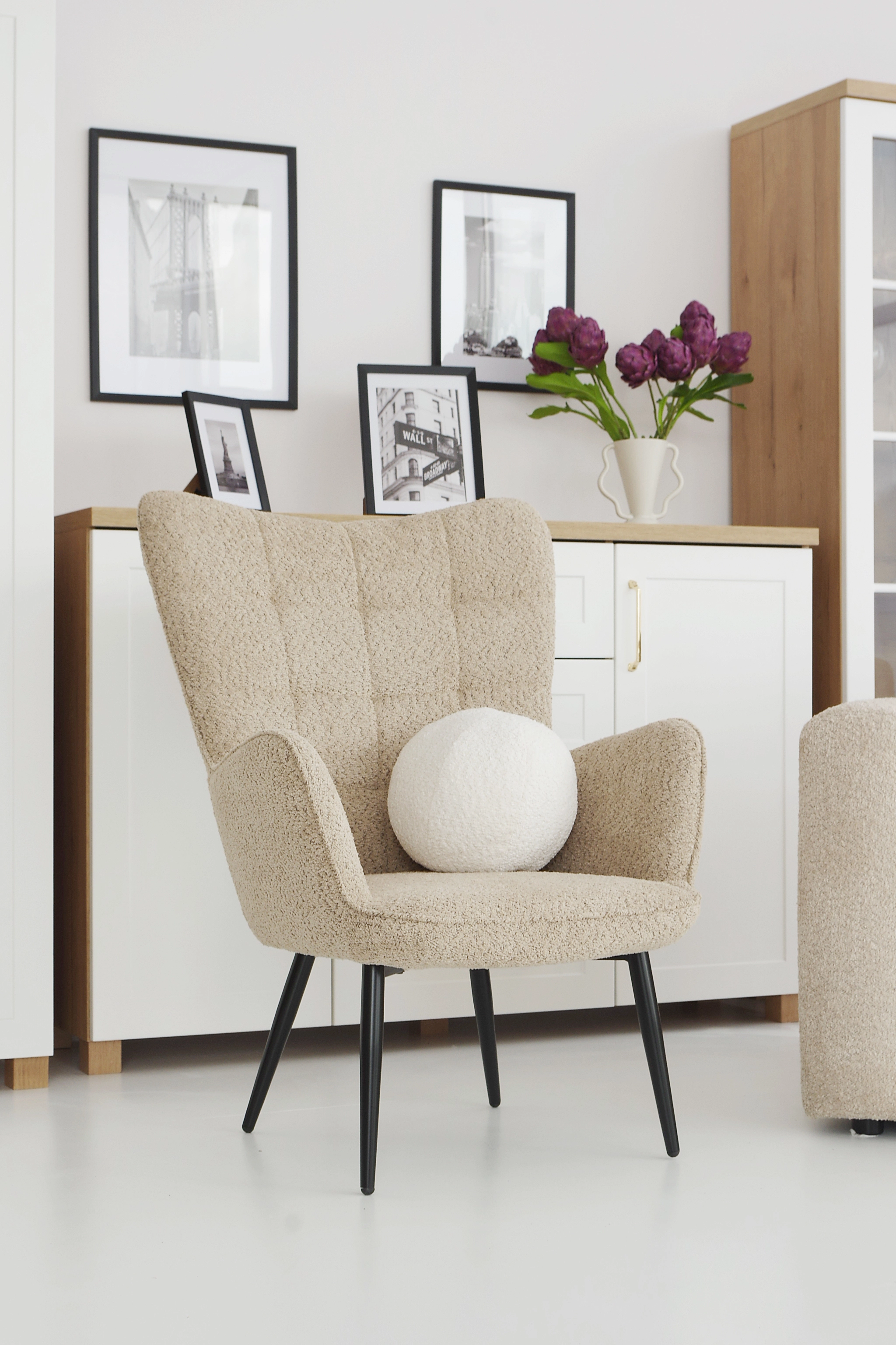 Fotel Felicja w kolorze cappuccino to elegancki i komfortowy dodatek do każdego wnętrza. Dzięki nowoczesnemu designowi i wygodnej konstrukcji idealnie sprawdzi się w salonie, sypialni lub gabinecie, wprowadzając ciepły i stylowy akcent.