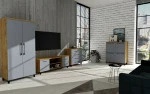 Kolekcja mebli pokojowych Panama w kolorze szary/dąb Soma ciemny to idealne połączenie nowoczesnego stylu i naturalnej elegancji. Ciemne dębowe akcenty nadają meblom ciepła i klasy, podczas gdy szare wykończenie wprowadza współczesny, minimalistyczny charakter. Funkcjonalne i estetyczne elementy kolekcji doskonale komponują się w różnych aranżacjach wnętrz, oferując praktyczne rozwiązania do przechowywania i organizacji przestrzeni. Kolekcja Panama to wybór dla tych, którzy cenią sobie styl i funkcjonalność w jednym.