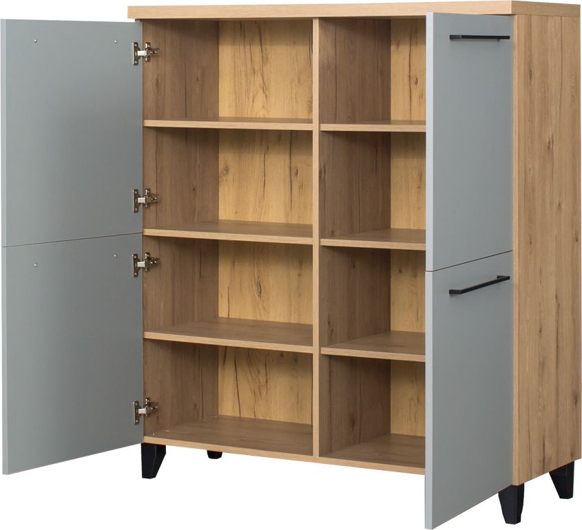 Komoda 4 drzwiowa Panama (szary/dąb Soma ciemny)