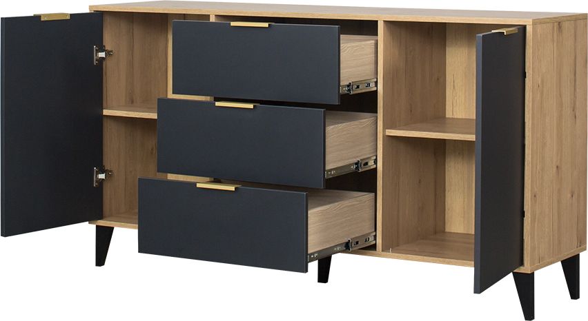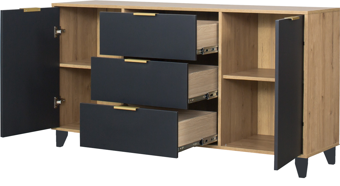 Komoda z drzwiczkami i szufladami Floryda (grafit/dąb Soma ciemny)