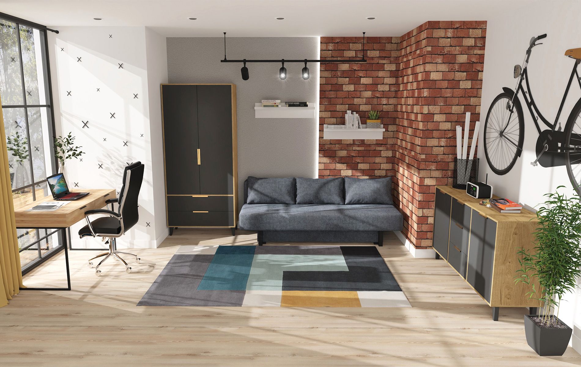 Prezentujemy niezwykle modny oraz efektowny zestaw Floryda w niebanalnej kolorystyce. Połączenie grafitu z drewnem to bardzo ciekawy i minimalistyczny styl, nowoczesny design, sprawi, że Twoje wnętrze nabierze niezwykłego wyglądu.