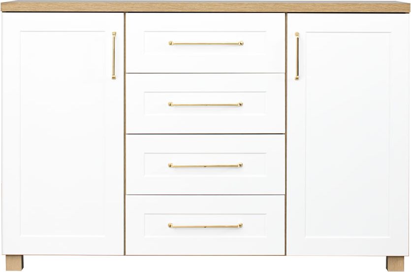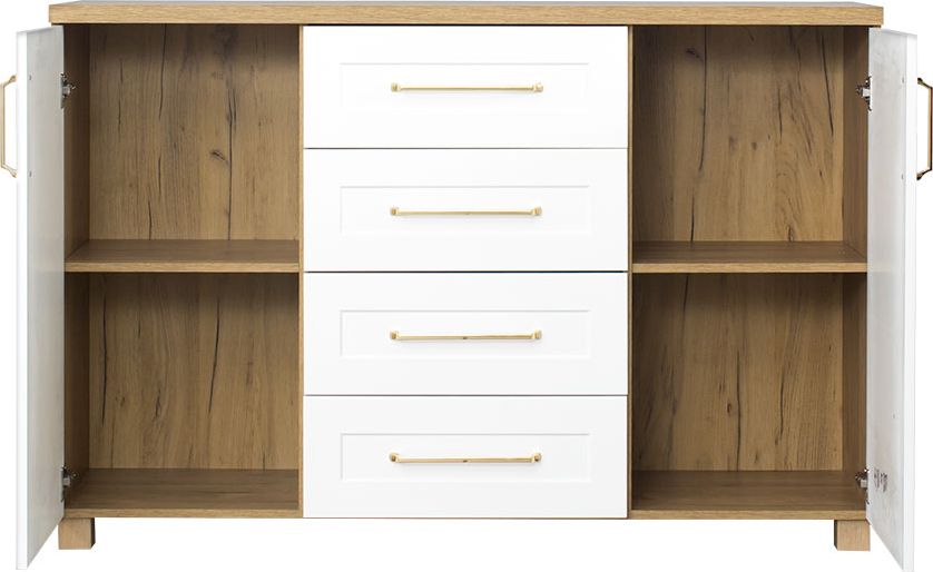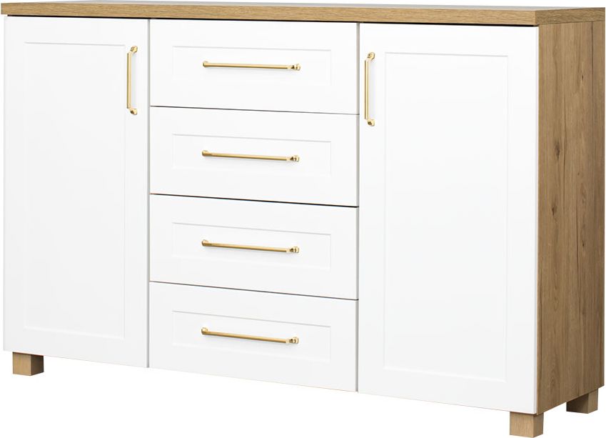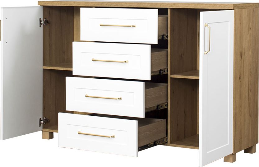 Komoda z drzwiczkami i 4 szufladami Hawana (biały lakier mat/dąb soma ciemny)