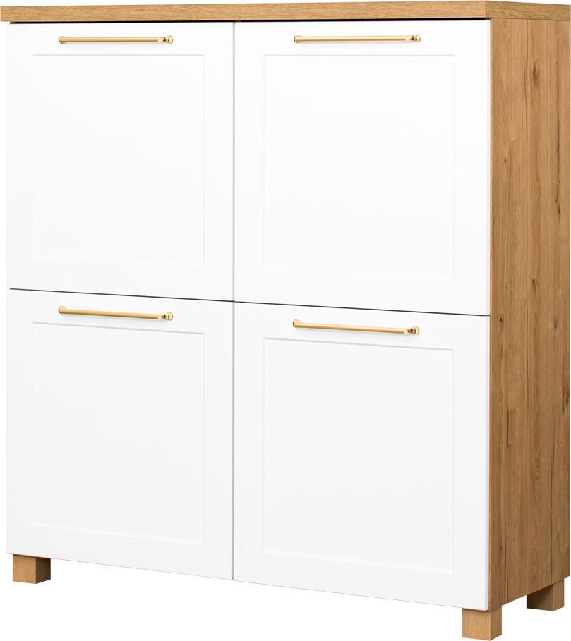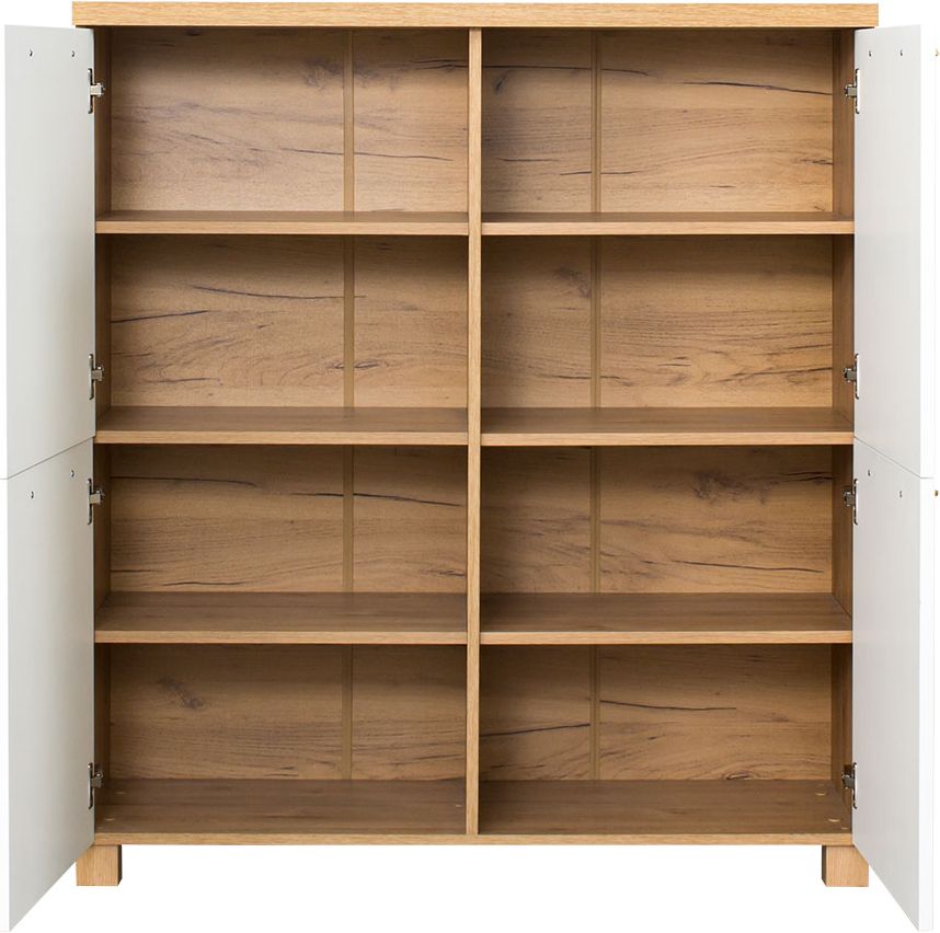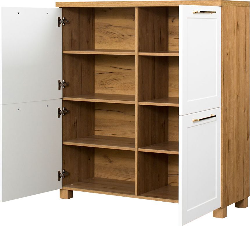 Komoda z 4 drzwiczkami Hawana (biały lakier mat/dąb soma ciemny)