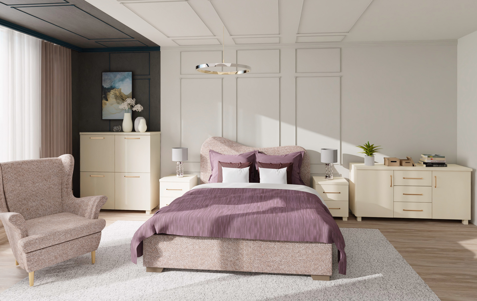 Kolekcja mebli pokojowych Bari w kolorze kaszmir to elegancka i nowoczesna linia, która doskonale komponuje się z różnorodnymi wnętrzami. Wykończenie w ciepłym odcieniu kaszmiru nadaje meblom subtelności i klasy, tworząc przytulną atmosferę w każdym pomieszczeniu. Kolekcja Bari charakteryzuje się prostymi liniami, funkcjonalnością i wysoką jakością wykonania. Meble z tej serii są idealne do aranżacji zarówno przestronnych salonów, jak i bardziej kameralnych pokoi, oferując wygodę i estetykę w jednym. Z kolekcją Bari stworzysz harmonijną przestrzeń, która zachwyci swoim nowoczesnym designem i ponadczasowym stylem.