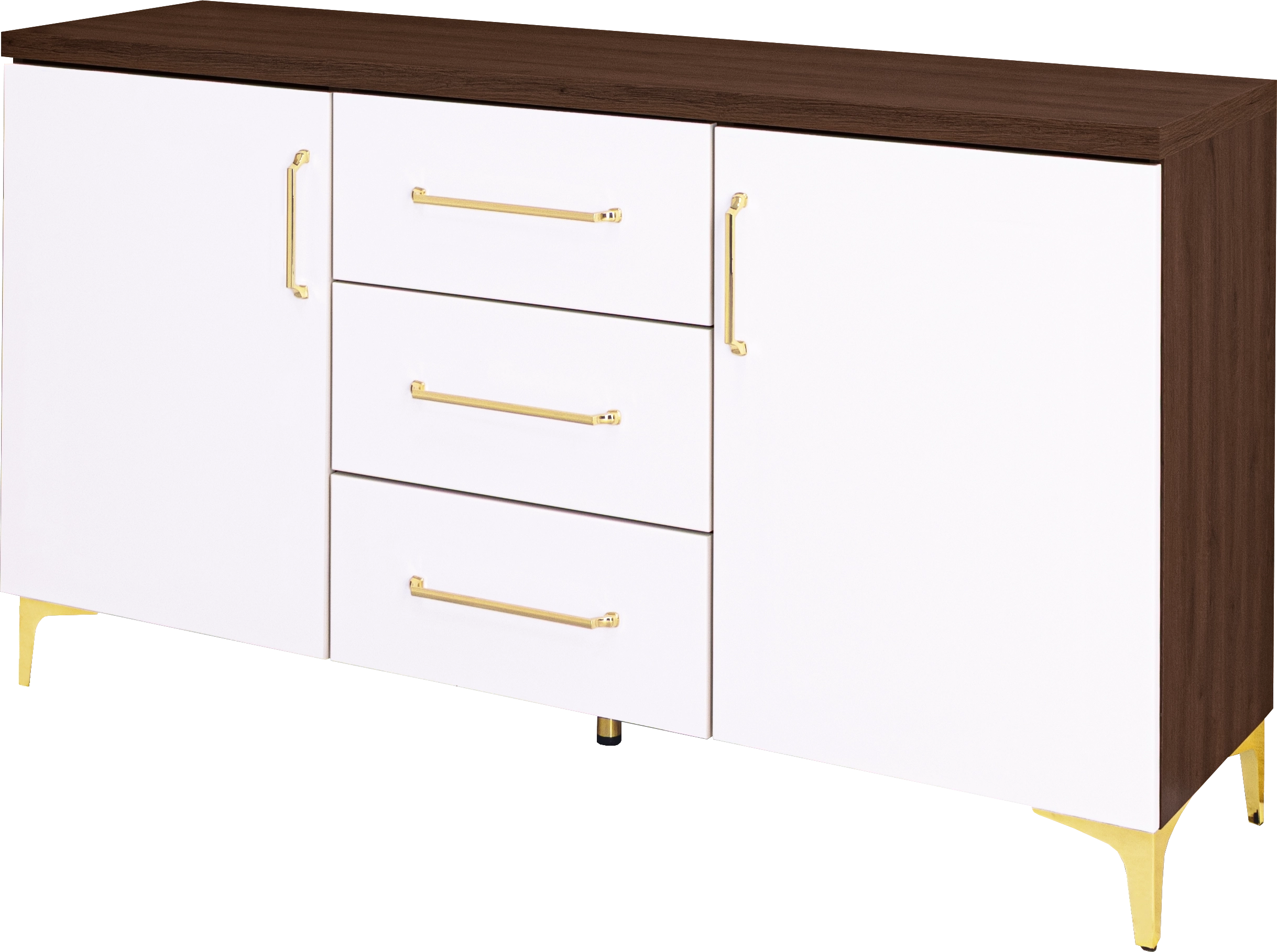 Komoda z drzwiczkami z 3 szufladami Bari (biały połysk/orzech Foresta)