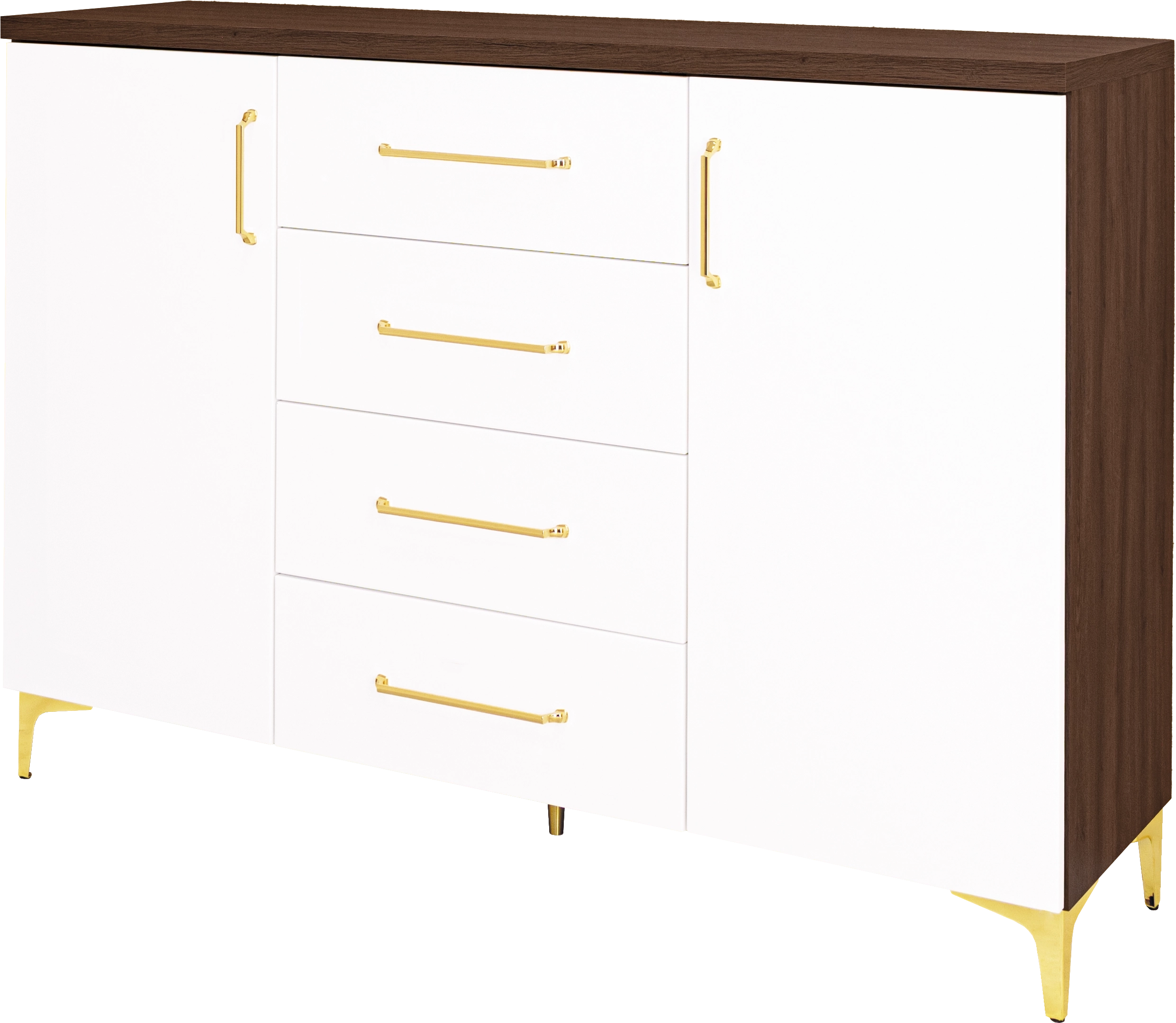Komoda z drzwiczkami i 4 szufladami Bari (biały połysk/orzech Foresta)