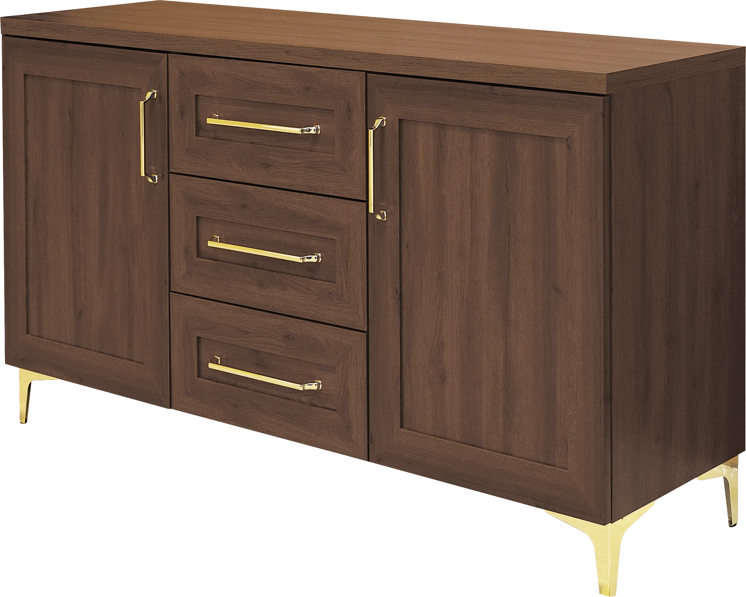 Komoda MA36 z kolekcji MAJORKA w kolorze orzech Foresta to funkcjonalny i elegancki mebel, idealny do różnych pomieszczeń. Posiada trzy pojemne szuflady oraz przestrzeń za drzwiami, co umożliwia wygodne przechowywanie zarówno mniejszych, jak i większych przedmiotów. Dzięki szerokości 150 cm i wysokości 82 cm świetnie sprawdzi się jako komoda do salonu, sypialni lub jadalni, łącząc praktyczność z ponadczasowym stylem.