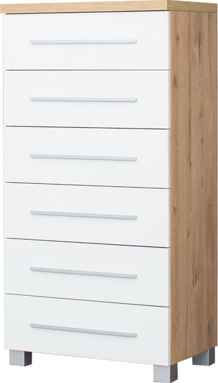 Komoda 6-szufladowa Panama (biały połysk/dąb Soma ciemny)