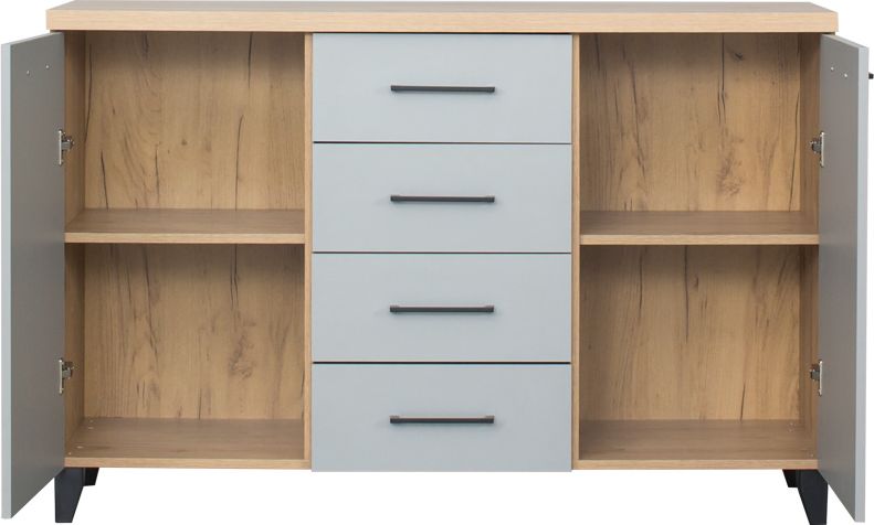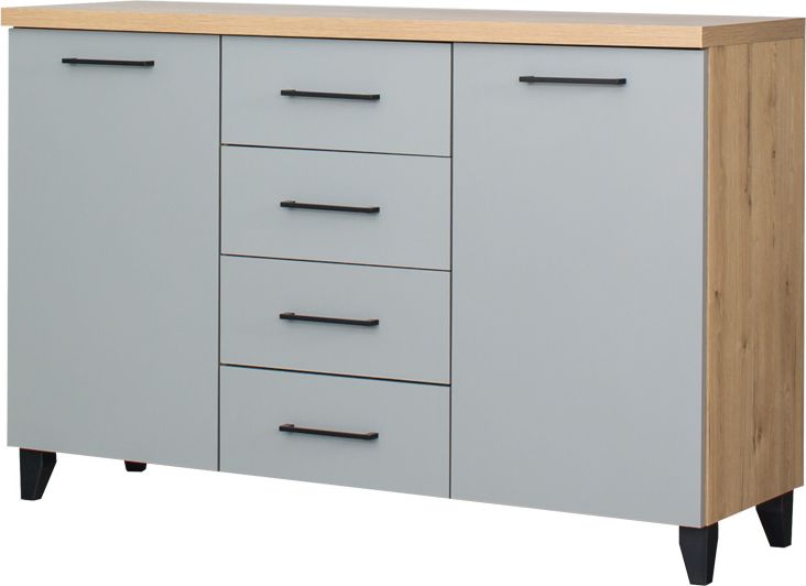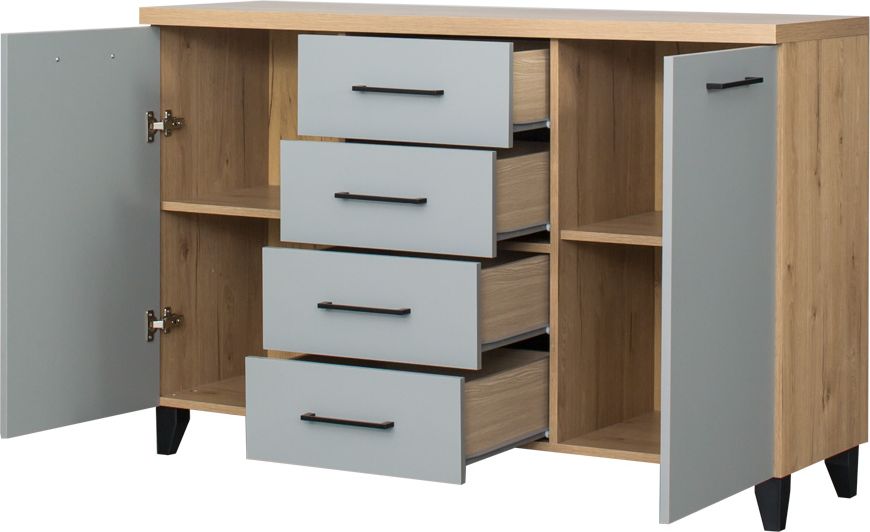 Komoda z frontami i 4-szufl. Panama (szary/dąb Soma ciemny)