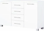 Komoda z frontami i 4 szufladami z systemu Panama w kolorze białym to elegancki i funkcjonalny mebel, który doskonale wpisuje się w nowoczesne wnętrza. Dzięki czterem pojemnym szufladom zapewnia odpowiednią przestrzeń do przechowywania różnorodnych przedmiotów, od ubrań po akcesoria domowe. Biały kolor frontów nadaje komodzie lekkości i sprawia, że idealnie komponuje się z różnymi aranżacjami wnętrz, dodając im świeżości i stylu.