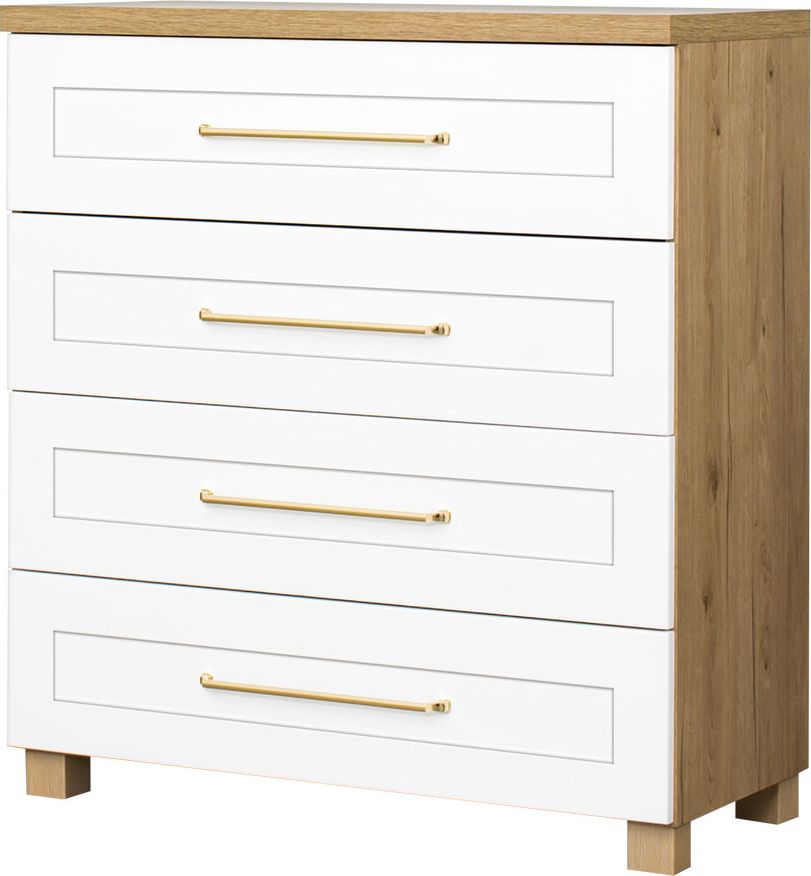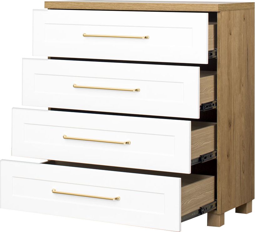 Komoda z 4 szufladami Hawana (biały lakier mat/dąb soma ciemny)