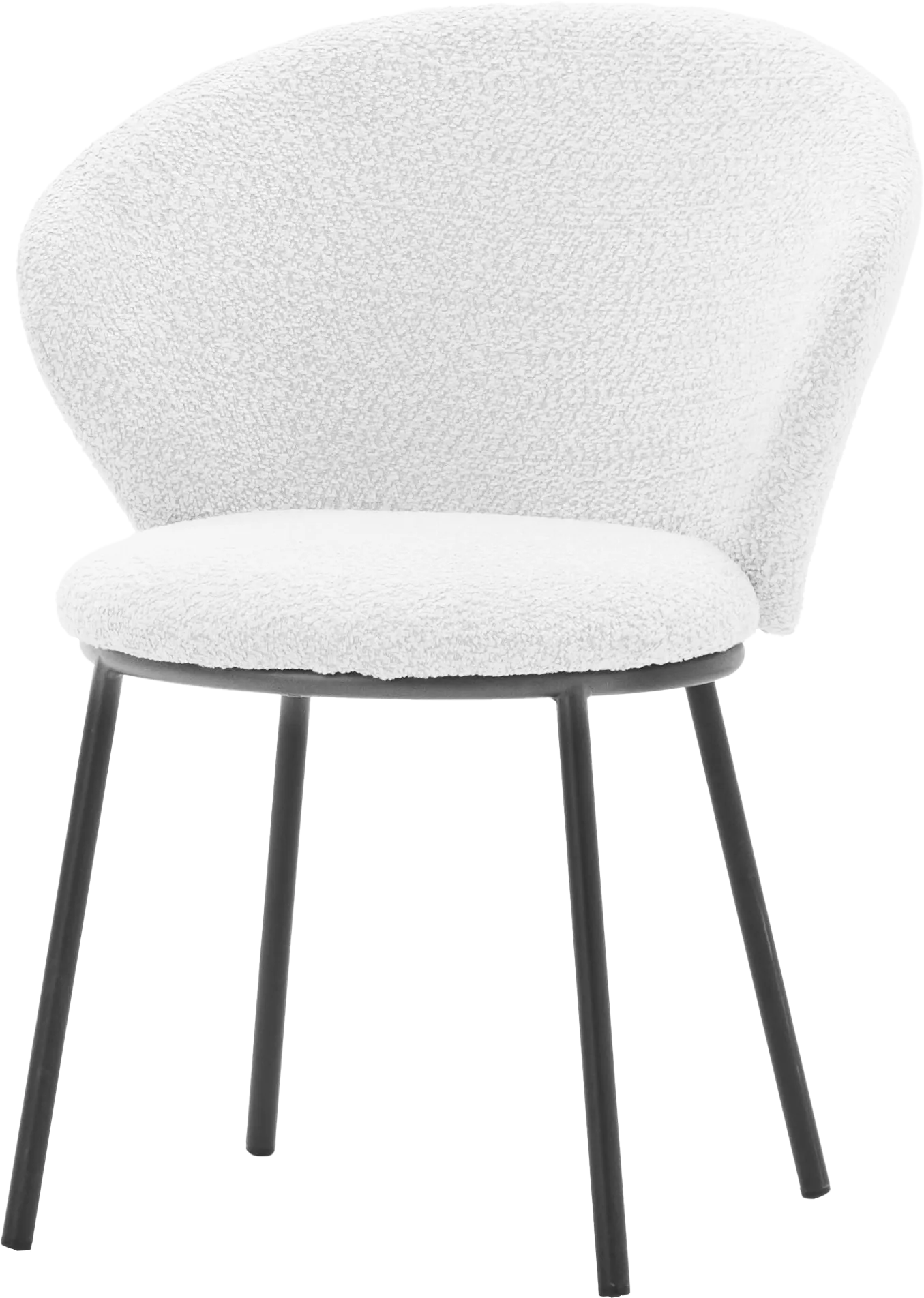 Krzesło "LARMES"-31 w kolorze kremowym boucle to elegancki i nowoczesny element wyposażenia wnętrza. Jego szerokość wynosi 68 cm, głębokość 62 cm, a wysokość 85 cm, co zapewnia wygodę i komfort użytkowania. Tapicerka z miękkiej tkaniny boucle nadaje mu przytulny i stylowy charakter, a czarne nogi dodają nowoczesnego kontrastu. Idealne do salonu, jadalni lub biura, świetnie komponując się z różnymi aranżacjami wnętrz.