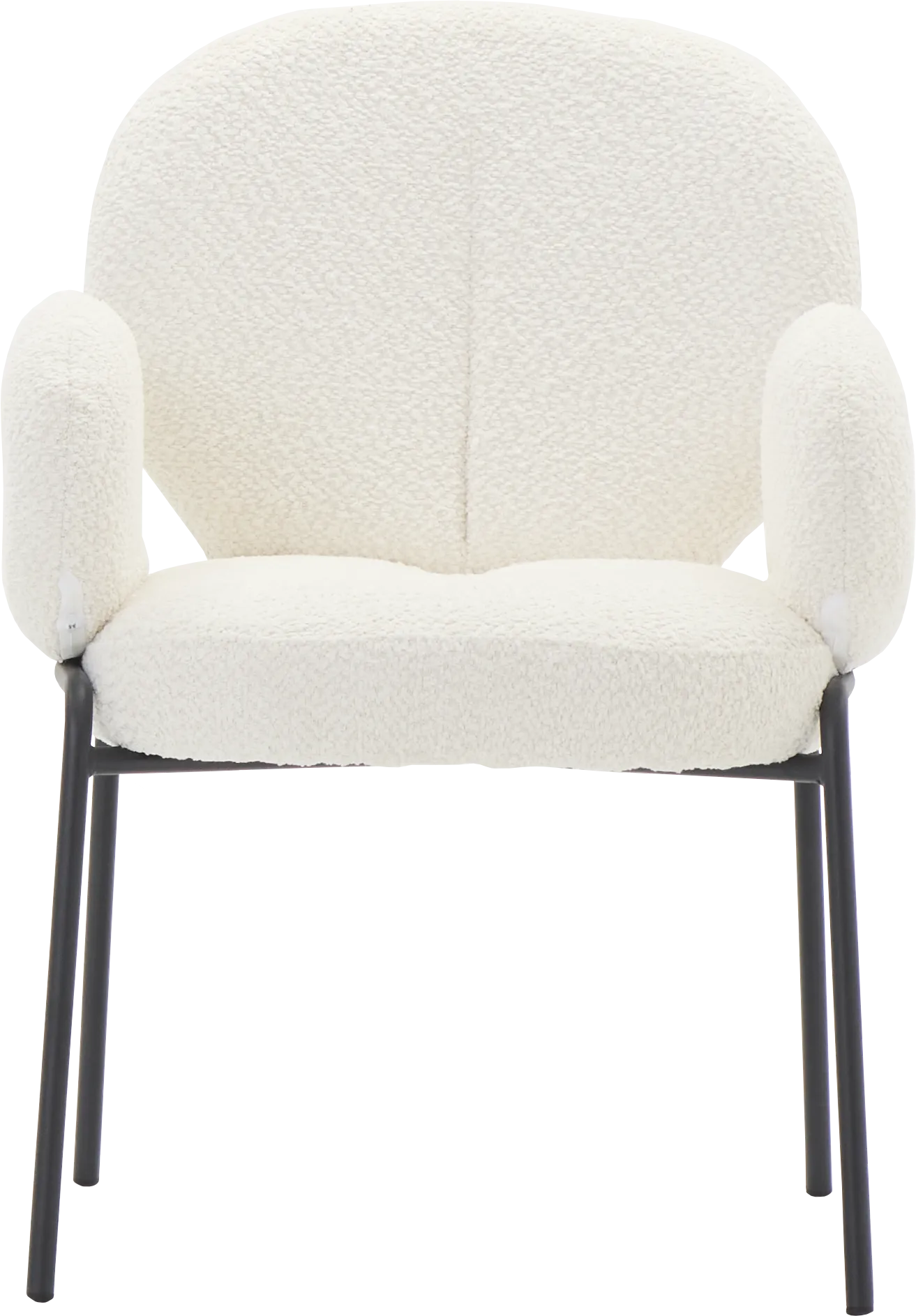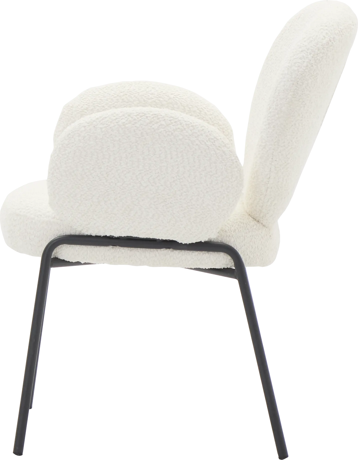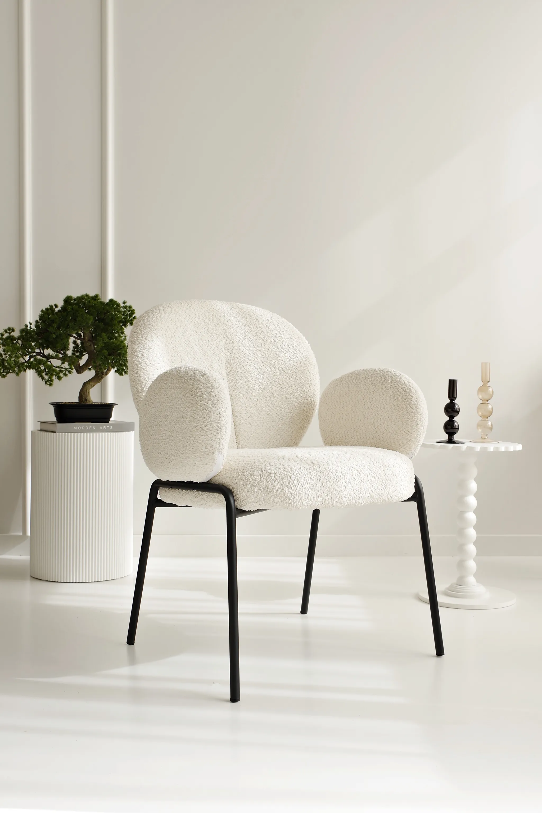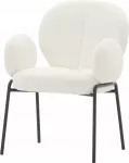 Krzesło "SOFTIS"-32 w kolorze kremowym boucle to elegancki i komfortowy mebel o przyjemnej w dotyku tkaninie. Wymiary 62 x 65 x 83 cm zapewniają wygodne oparcie i swobodę siedzenia, a czarne nogi nadają całości nowoczesnego charakteru. Idealne do salonu, jadalni lub gabinetu.