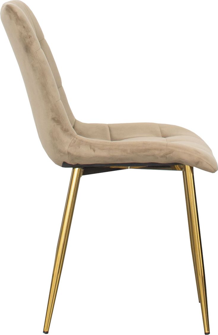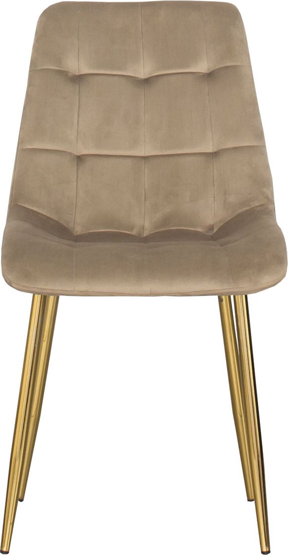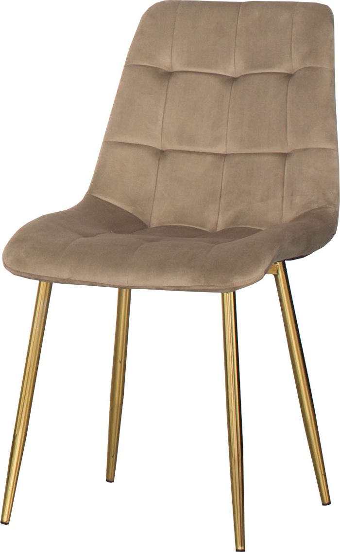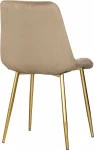 Nowoczesne krzesło tapicerowane Goldino to połączenie elegancji i komfortu. Wykończone miękkim, przyjemnym w dotyku materiałem, oferuje wyjątkowy komfort podczas użytkowania. Pikowane siedzisko i oparcie dodają mu eleganckiego charakteru, podkreślając jego walory estetyczne. Złote nogi dodają krzesłu luksusowego blasku, czyniąc je eleganckim akcentem w jadalni czy kuchni. Idealne do wnętrz, gdzie styl łączy się z funkcjonalnością.