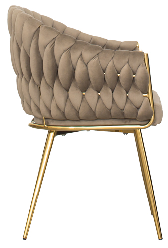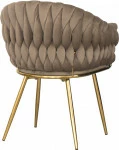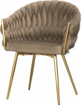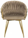 Komfortowy fotel Marbella ze złotym stelażem to idealne połączenie funkcjonalności i elegancji. Wygodne siedzisko zapewnia doskonały komfort, a luksusowy złoty stelaż dodaje wnętrzu nowoczesnego blasku. Fotel Marbella doskonale komponuje się zarówno w jadalni, jak i kuchni, wprowadzając stylowy akcent do przestrzeni. Jego elegancki wygląd i komfort sprawiają, że jest doskonałym wyborem do każdego wnętrza, gdzie funkcjonalność łączy się z estetyką.