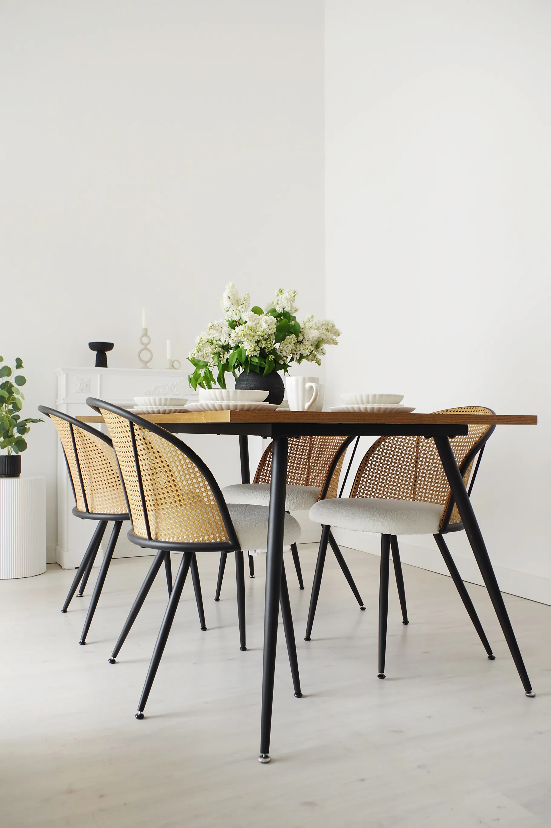 Krzesło Skandina w kolorach kremowym i czarnym to stylowy mebel, który łączy skandynawską prostotę z nowoczesnym designem. Kremowe siedzisko wprowadza ciepło i przytulność, a czarne nogi dodają elegancji i stabilności. Idealne do jadalni, salonu czy biura, krzesło Skandina harmonijnie wpisuje się w różnorodne aranżacje wnętrz, zapewniając wygodę i estetykę.