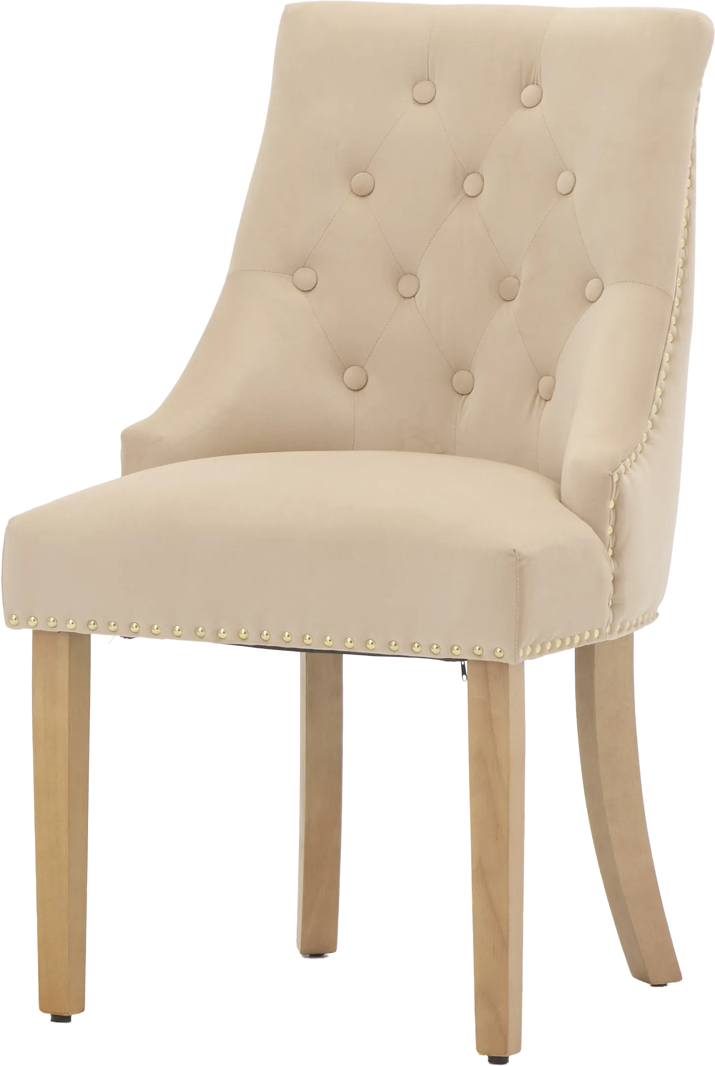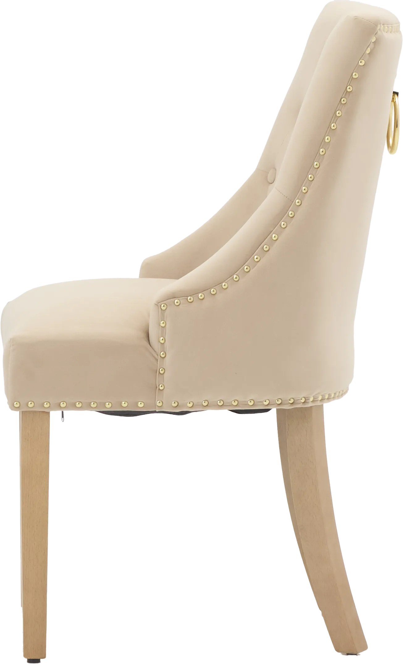 Krzesło "SOFIA"-29 w kolorze beżowym to elegancki i stylowy mebel, który doskonale komponuje się z różnymi aranżacjami wnętrz. Jego wymiary 58 x 64,5 x 96 cm zapewniają wygodę użytkowania. Stabilne nogi w kolorze dębu nadają mu naturalny charakter, a złote dodatki podkreślają jego wyrafinowany design. Idealne do jadalni, salonu lub gabinetu, łącząc komfort z estetyką.