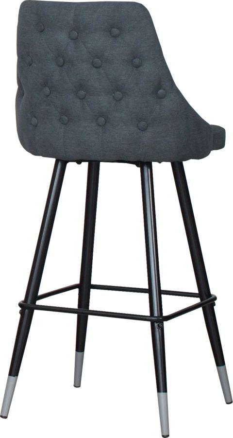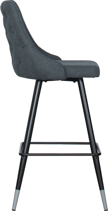 Hoker LAURENCJA to niezwykle nowatorskie i wygodne krzesło o bardzo ciekawych walorach estetycznych. Miękkie, tapicerowane siedzisko oraz oparcie w kolorze grafitowym pokryte zostały materiałem z poliestru gwarantującym przyjemne wrażenia w dotyku oraz łatwość utrzymania w czystości. Tył oparcia efektownie wykończony guzikami (16 sztuk). Całość oparta jest na czterech solidnych, metalowych nogach zamontowanych pod odpowiednim kątem. Nogi w kolorze czarnym, zakończone srebrnym akcentem. Na dole  zastosowano wzmocnienie z prętów, dzięki czemu hoker jest stabilny zapewniając przy tym bezpieczeństwo podczas jego użytkowania.