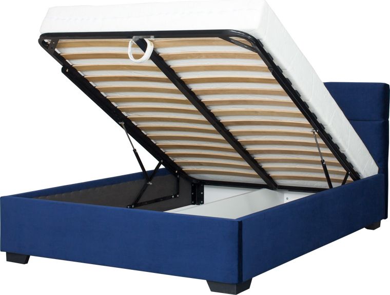 Łóżko tapicerowane 140 Sawona (plusz granat) ze stelażem i pojemnikiem