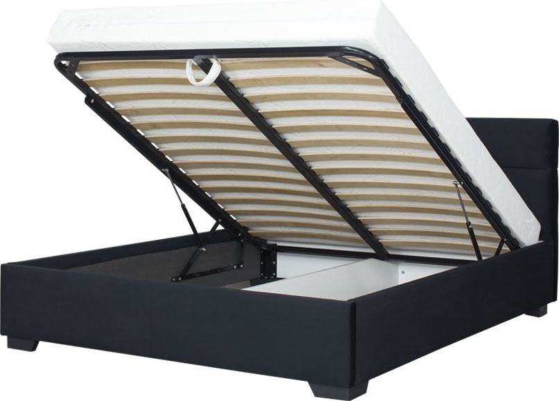 Łóżko tapicerowane 160 Sawona (plusz czarny) ze stelażem i pojemnikiem