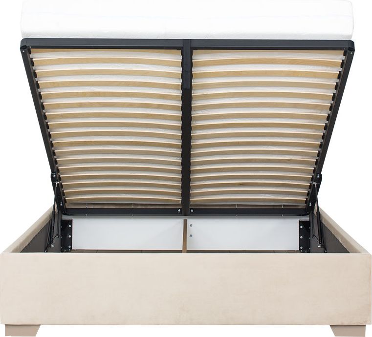 Łóżko tapicerowane 140 Sawona (plusz beż) ze stelażem i pojemnikiem