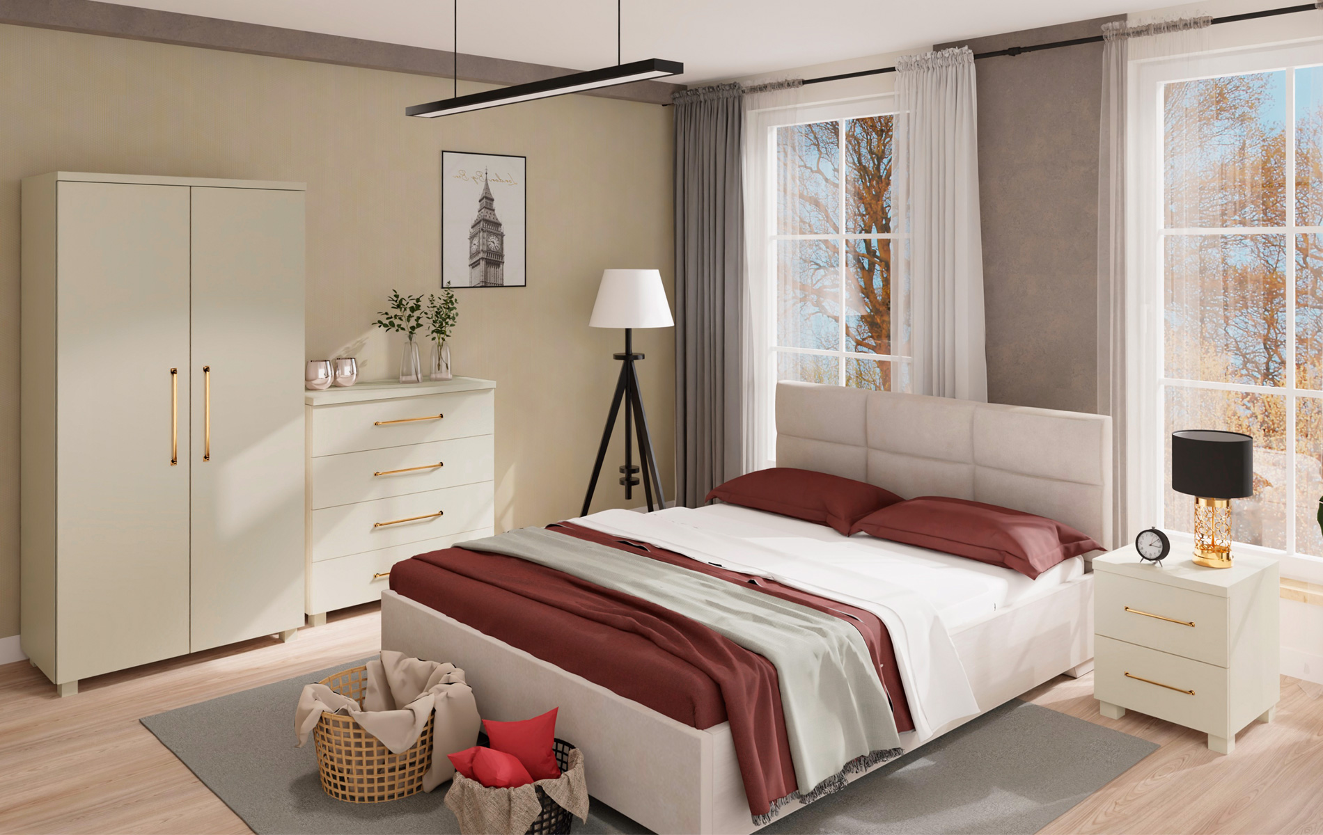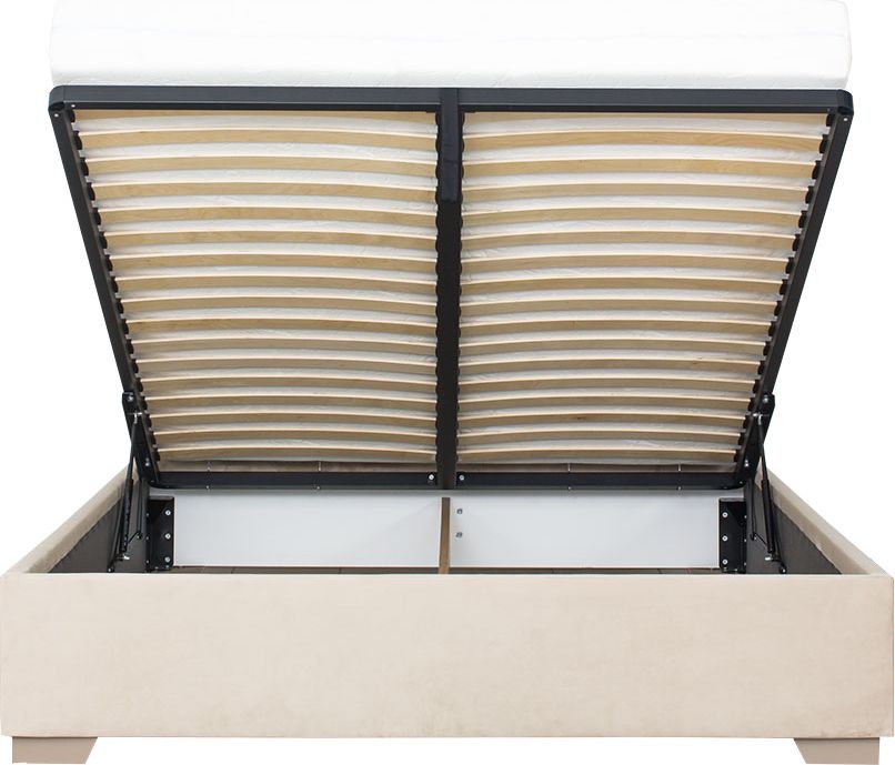 Łóżko tapicerowane 160 Sawona (plusz beż) ze stelażem i pojemnikiem