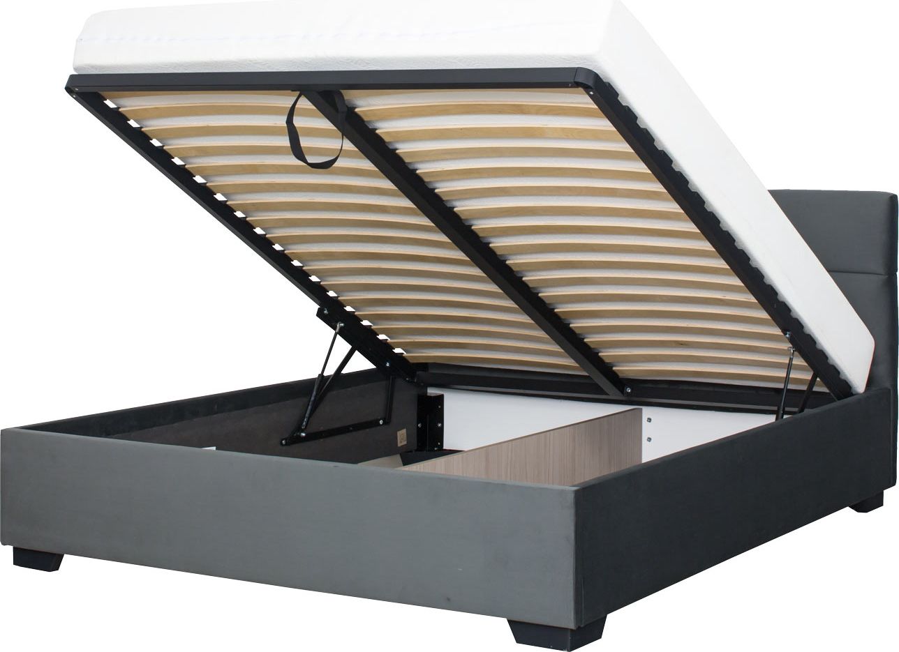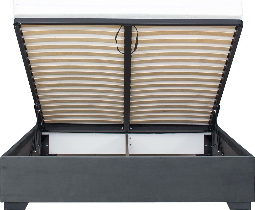 Łóżko tapicerowane 180 Sawona (plusz grafit) stelażem i pojemnikiem