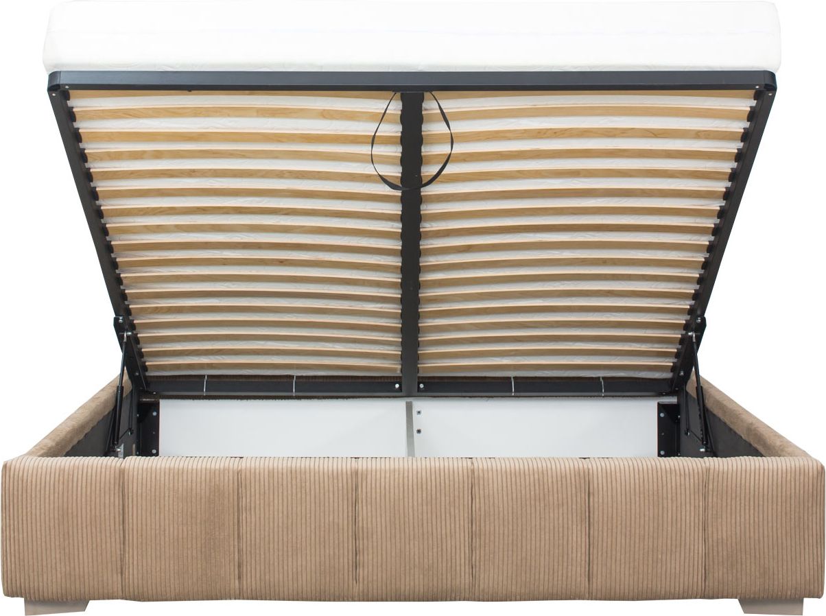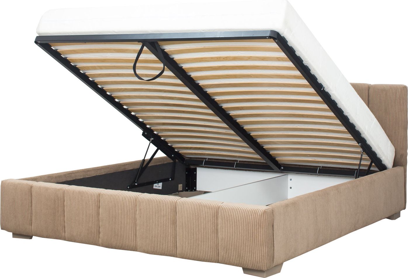 Łóżko tapicerowane 160 Mindy (sztruks brąz) ze stelażem i pojemnikiem