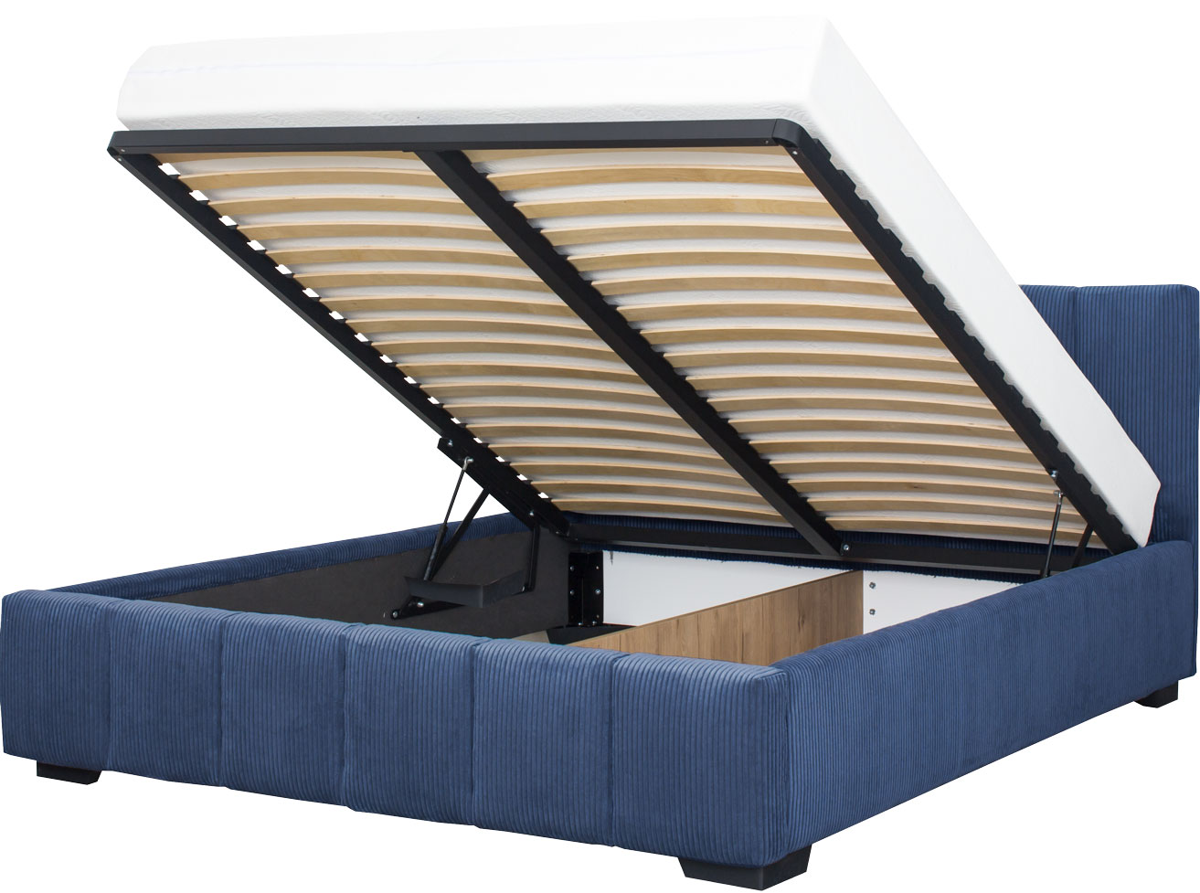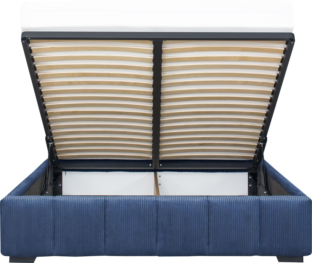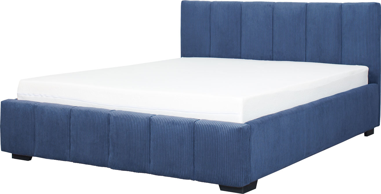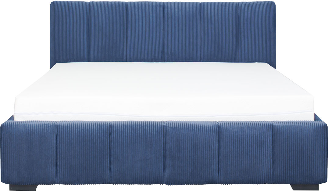 Łóżko tapicerowane 160 Mindy (sztruks granat) ze stelażem i pojemnikiem