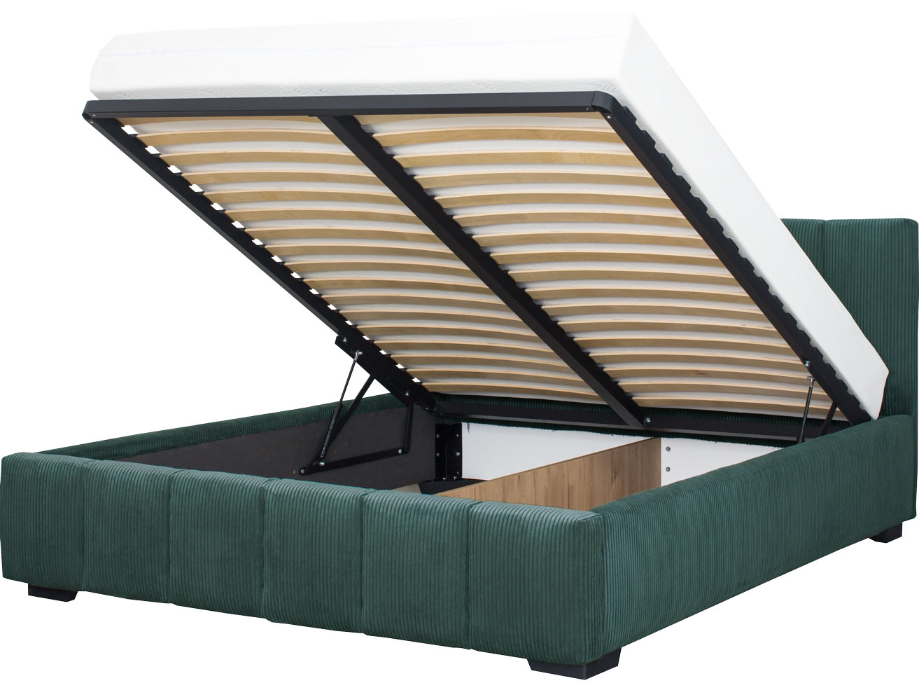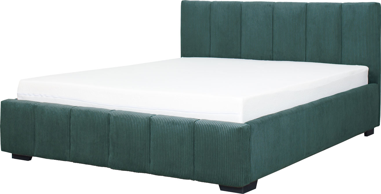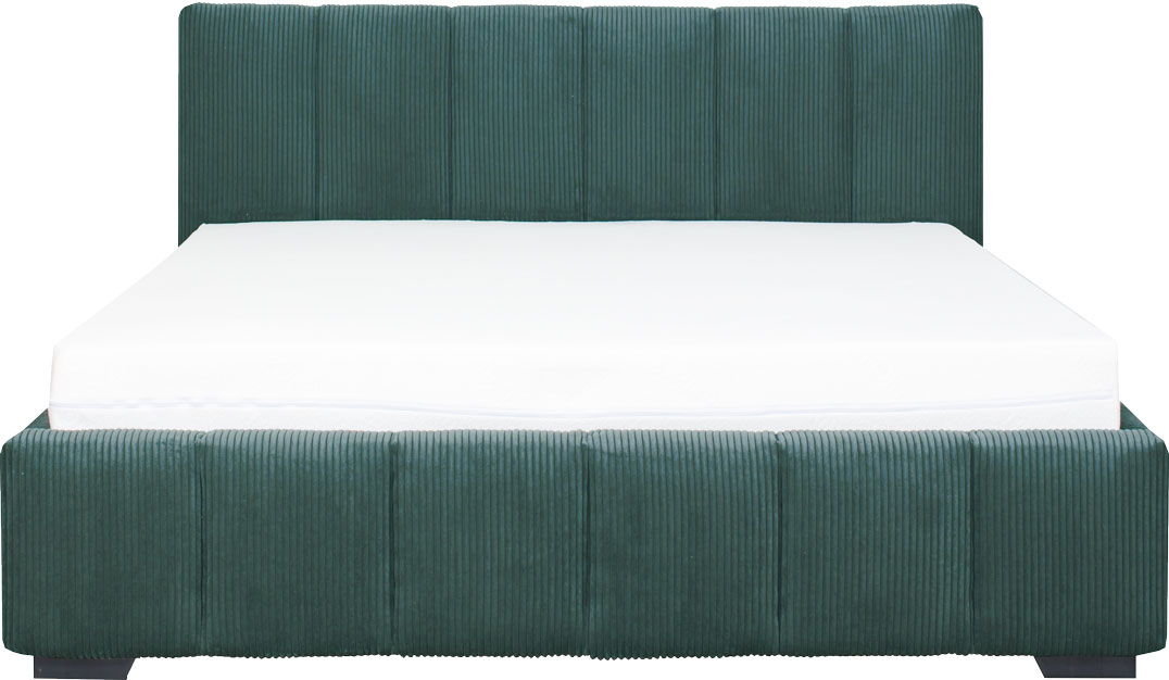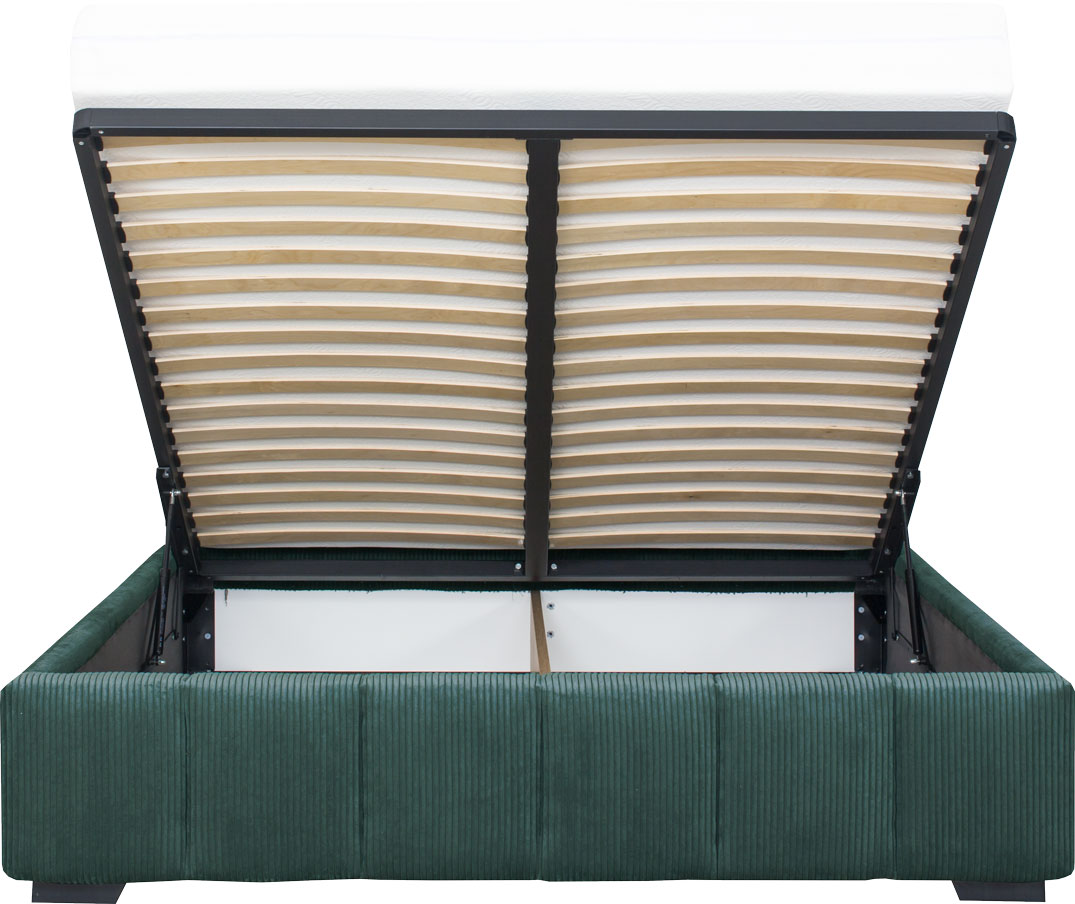 Łóżko tapicerowane 160 Mindy (sztruks zielony) ze stelażem i pojemnikiem