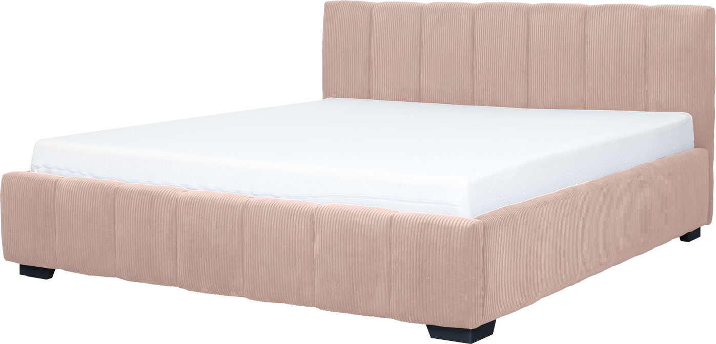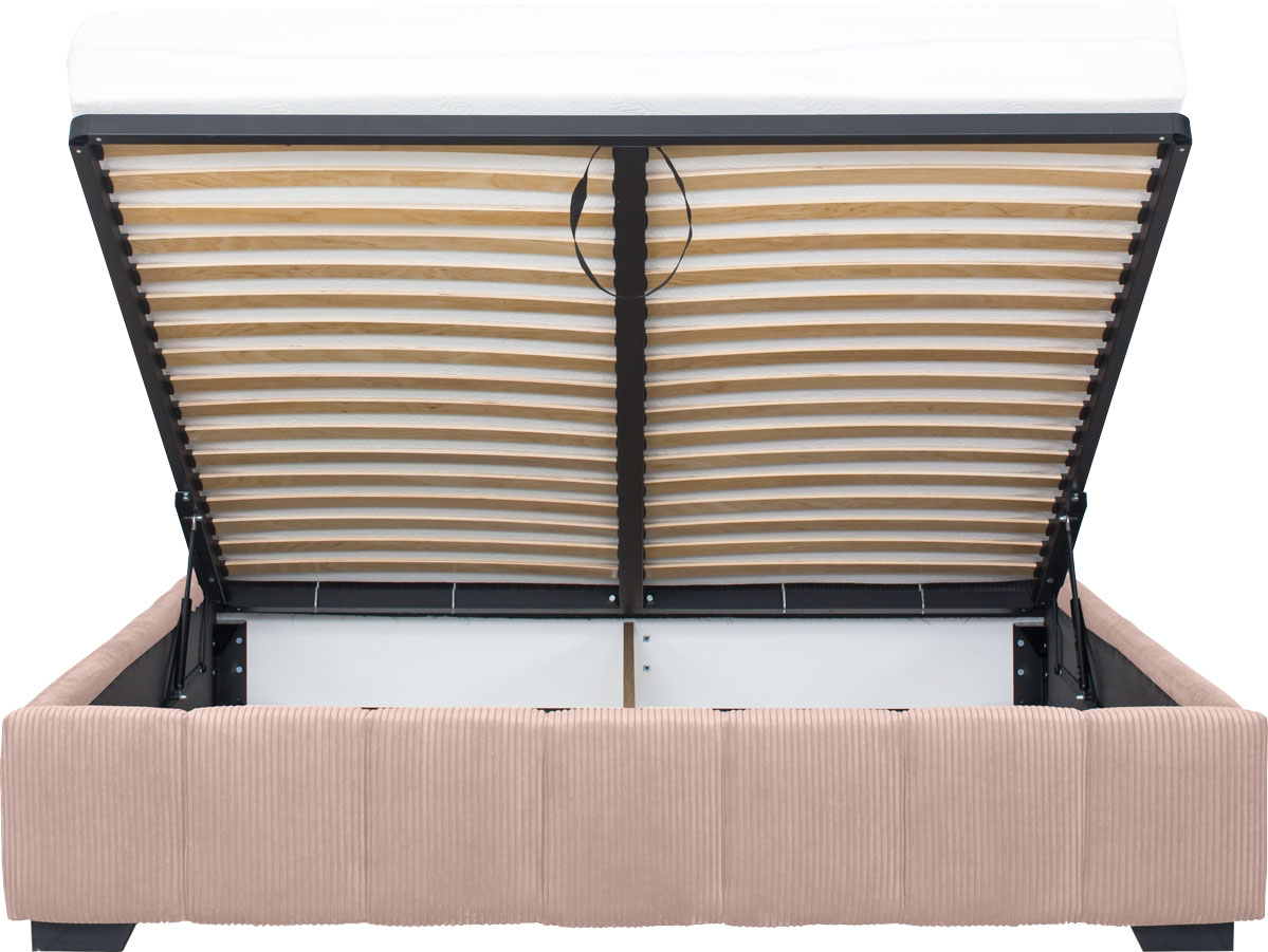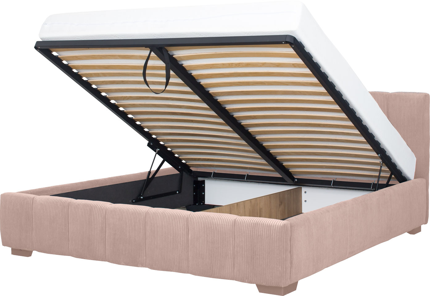 Łóżko tapicerowane 180 Mindy (sztruks róż) ze stelażem i pojemnikiem