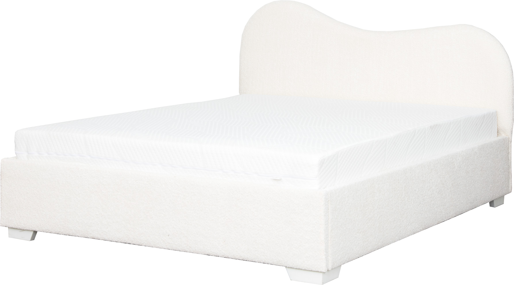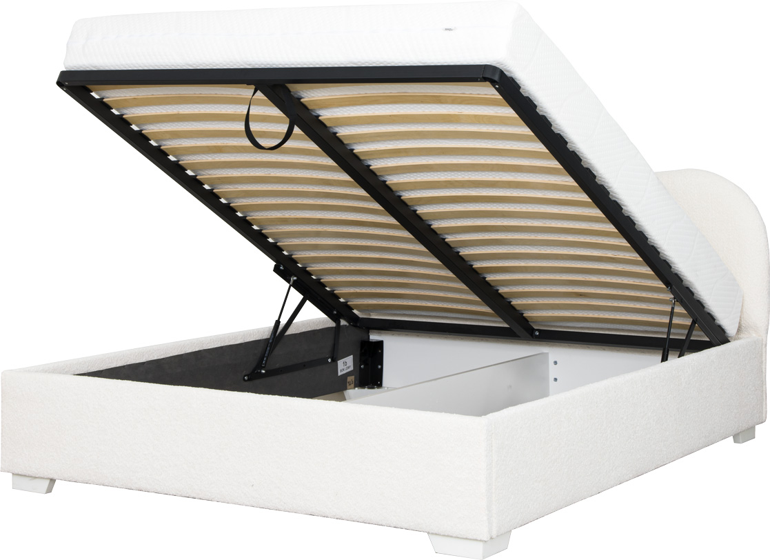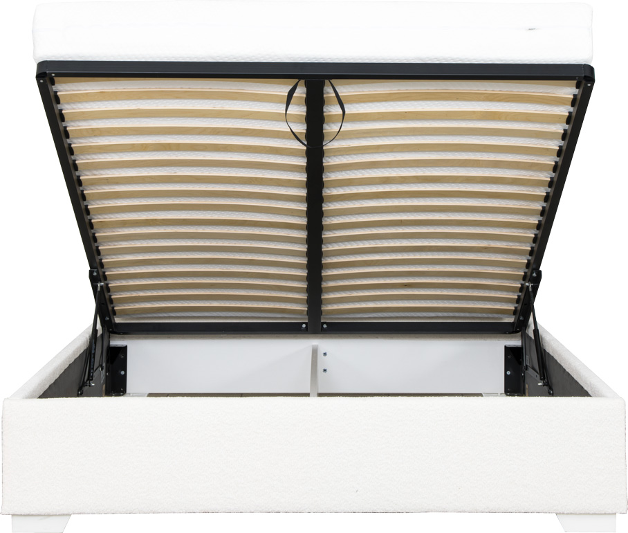 Łóżko tapicerowane 160 Cloudi (boucle kremowy) ze stelażem i pojemnikiem