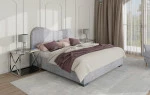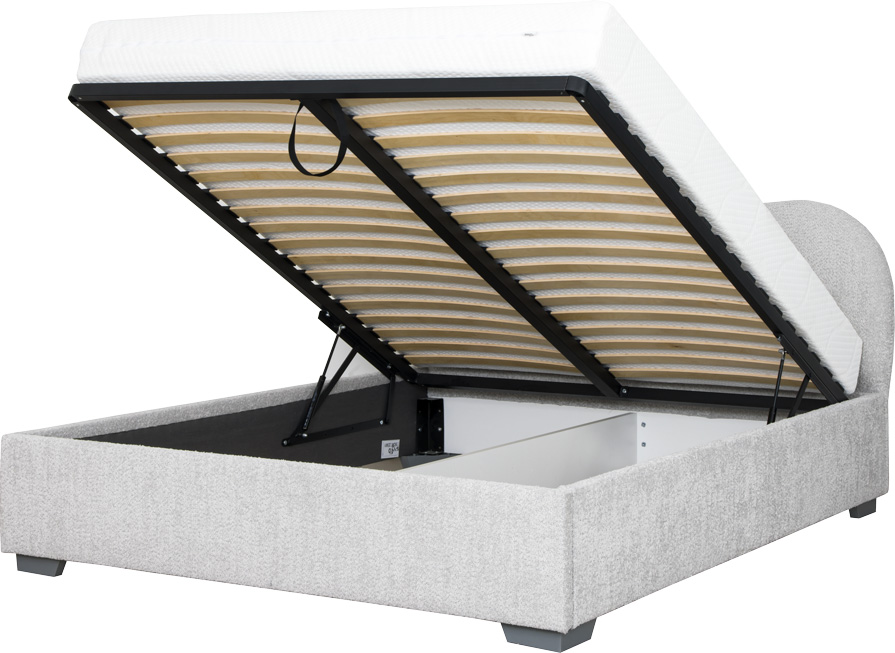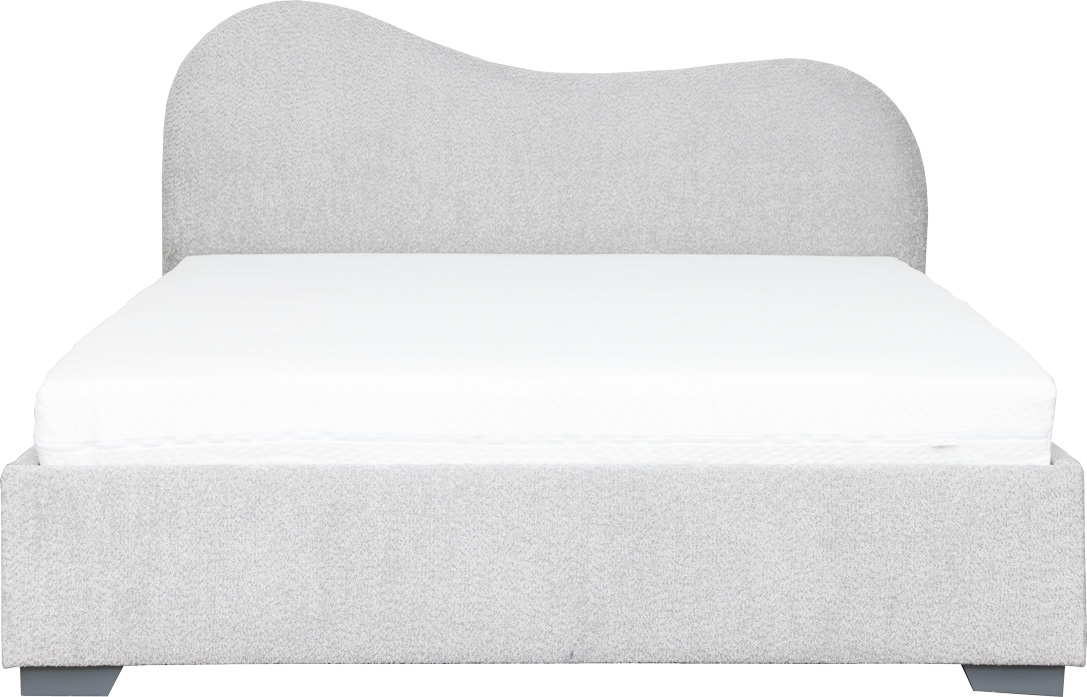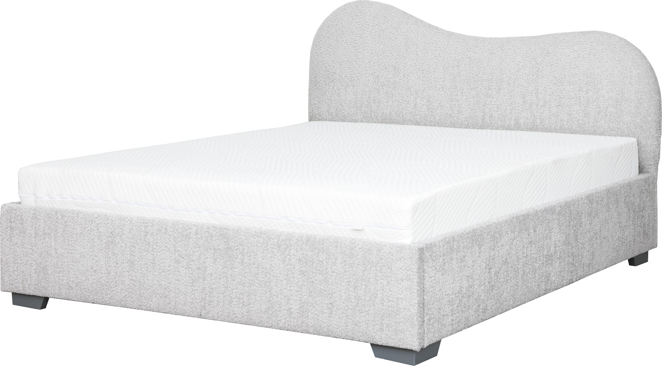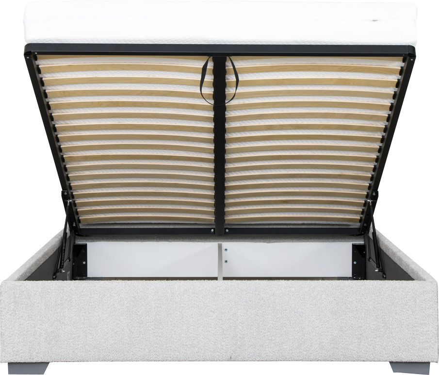 Łóżko tapicerowane 160 Cloudi (boucle szary) ze stelażem i pojemnikiem