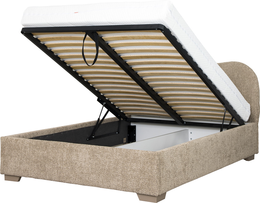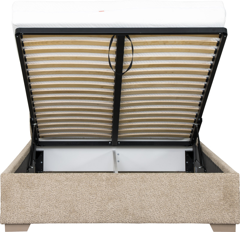 Łóżko tapicerowane 140 Cloudi (boucle cappuccino) ze stelażem i pojemnikiem