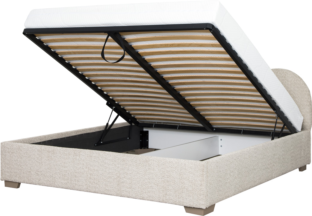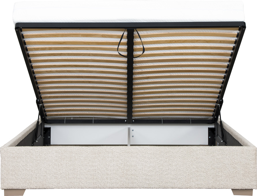 Łóżko tapicerowane 180 Cloudi (boucle beż) ze stelażem i pojemnikiem