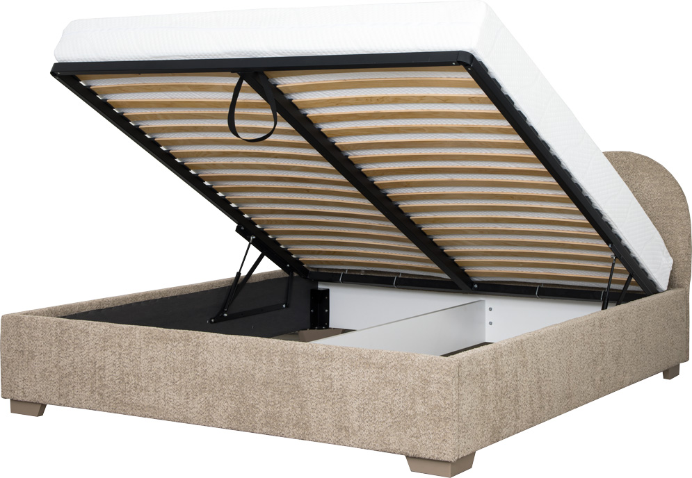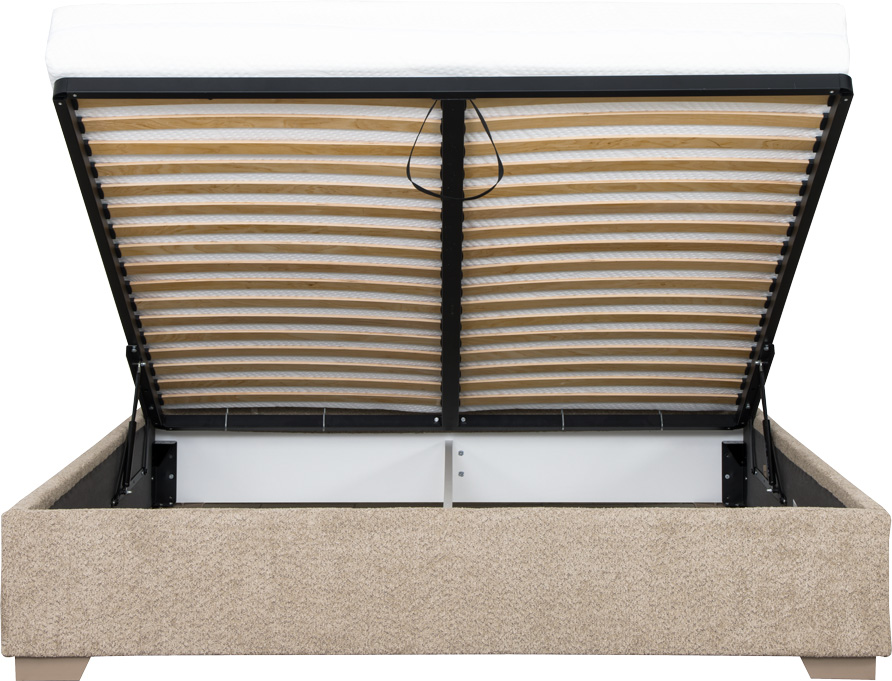Łóżko tapicerowane 180 Cloudi (boucle cappuccino) ze stelażem i pojemnikiem