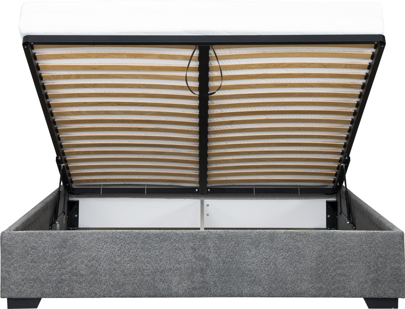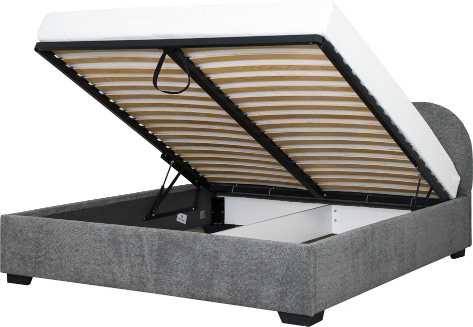 Łóżko tapicerowane 180 Cloudi (boucle grafit) ze stelażem i pojemnikiem