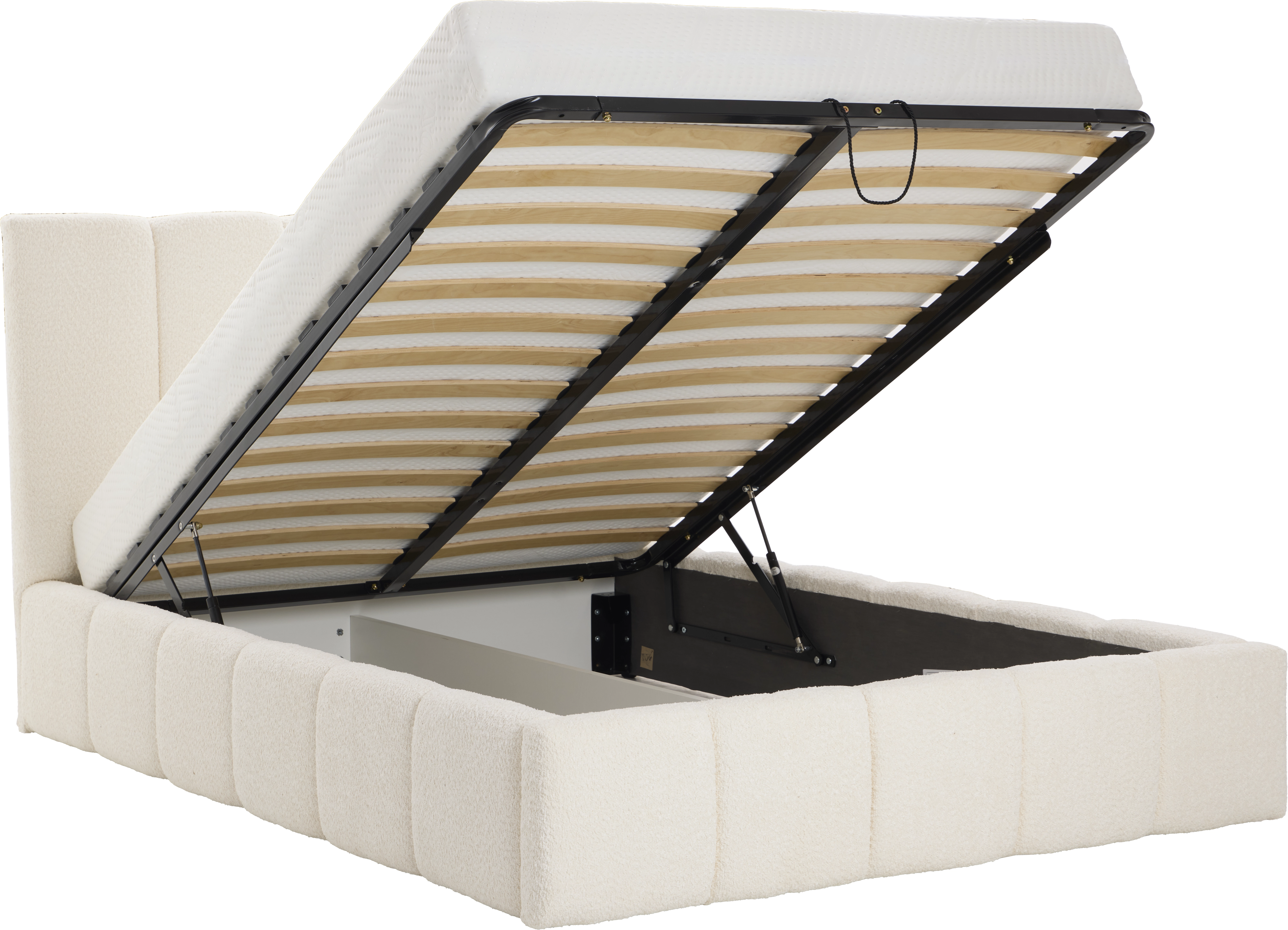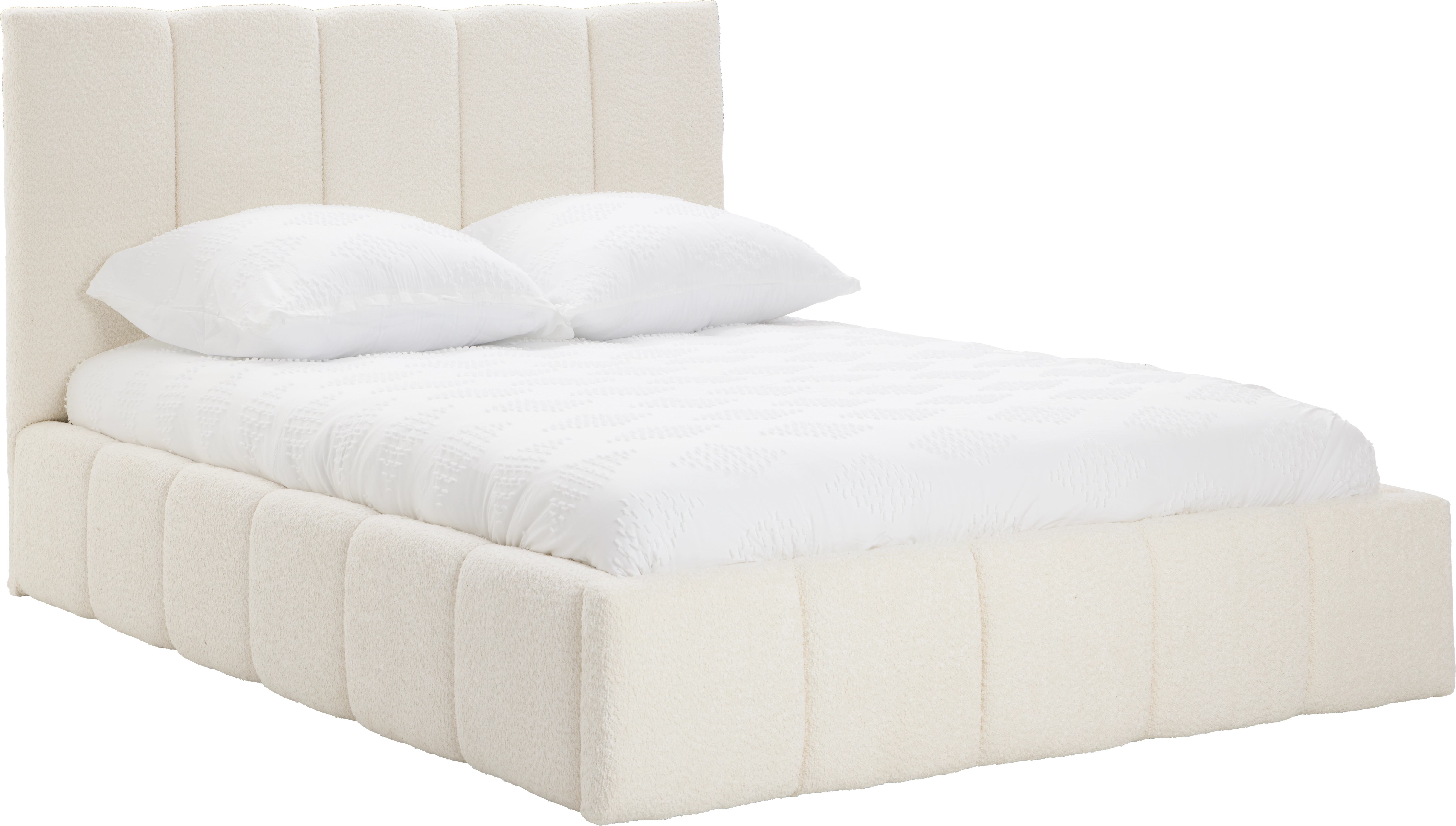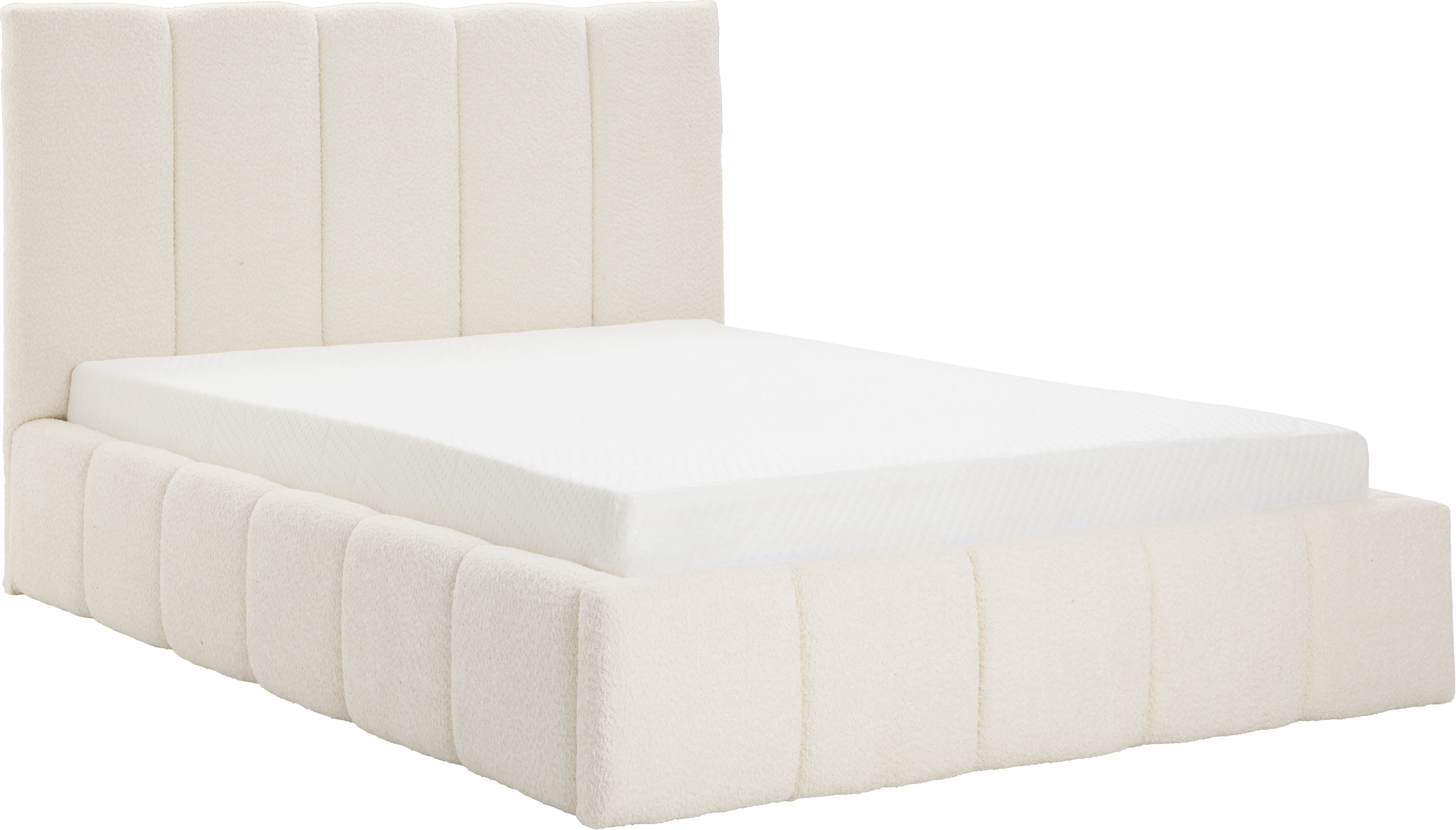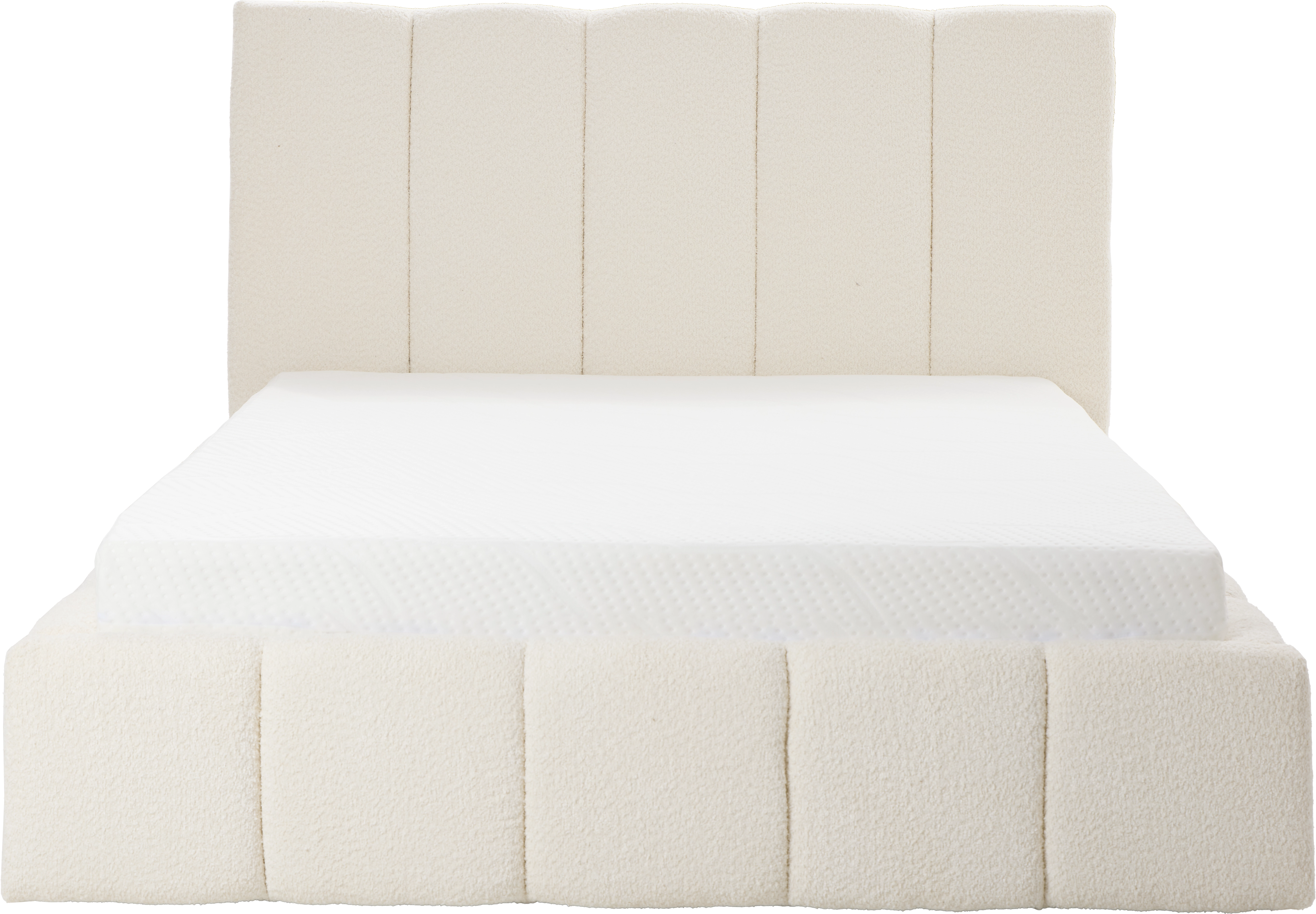 Łóżko tapicerowane Bianko 140 (boucle kremowy) ze stelażem i pojemnikiem