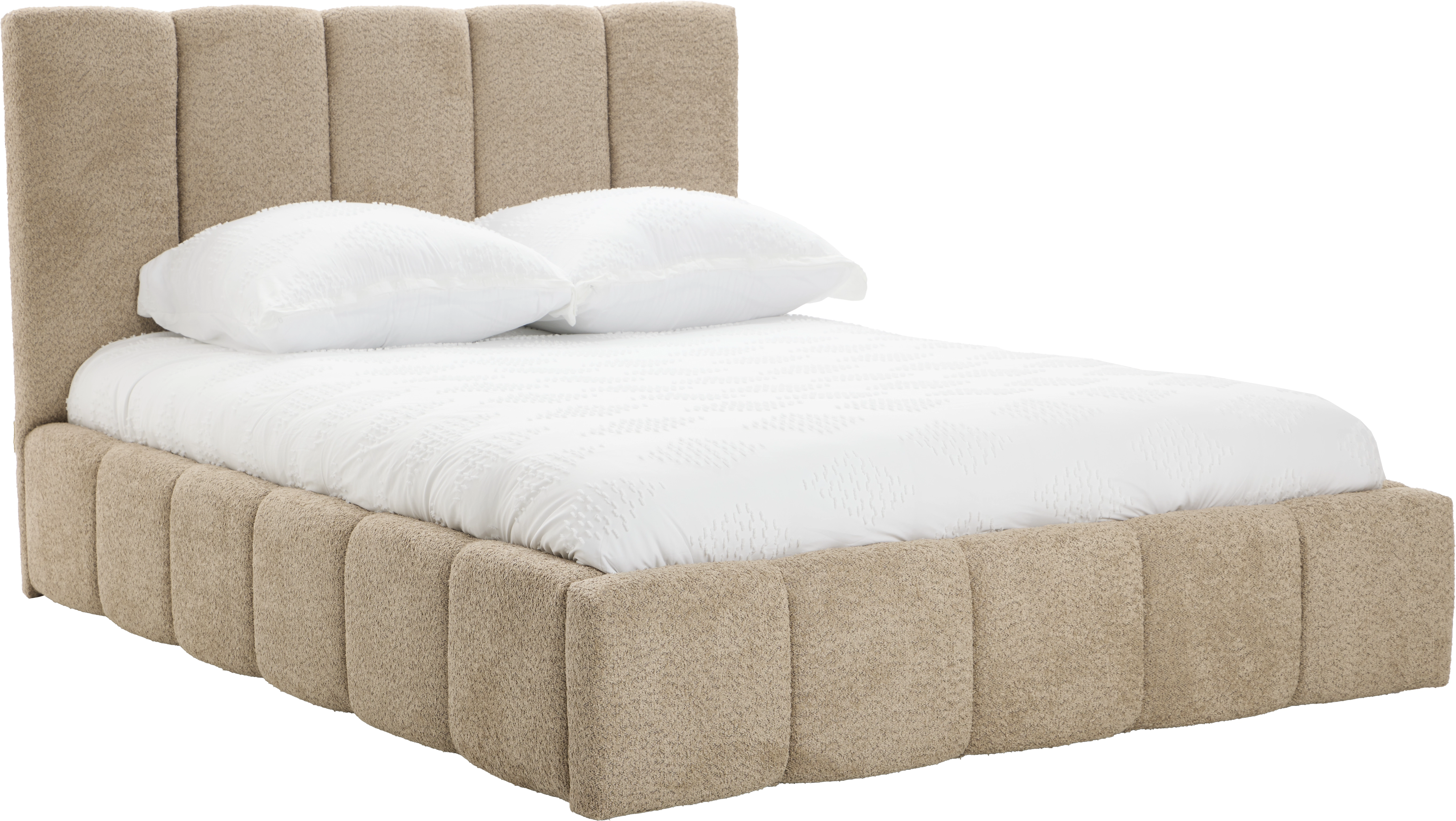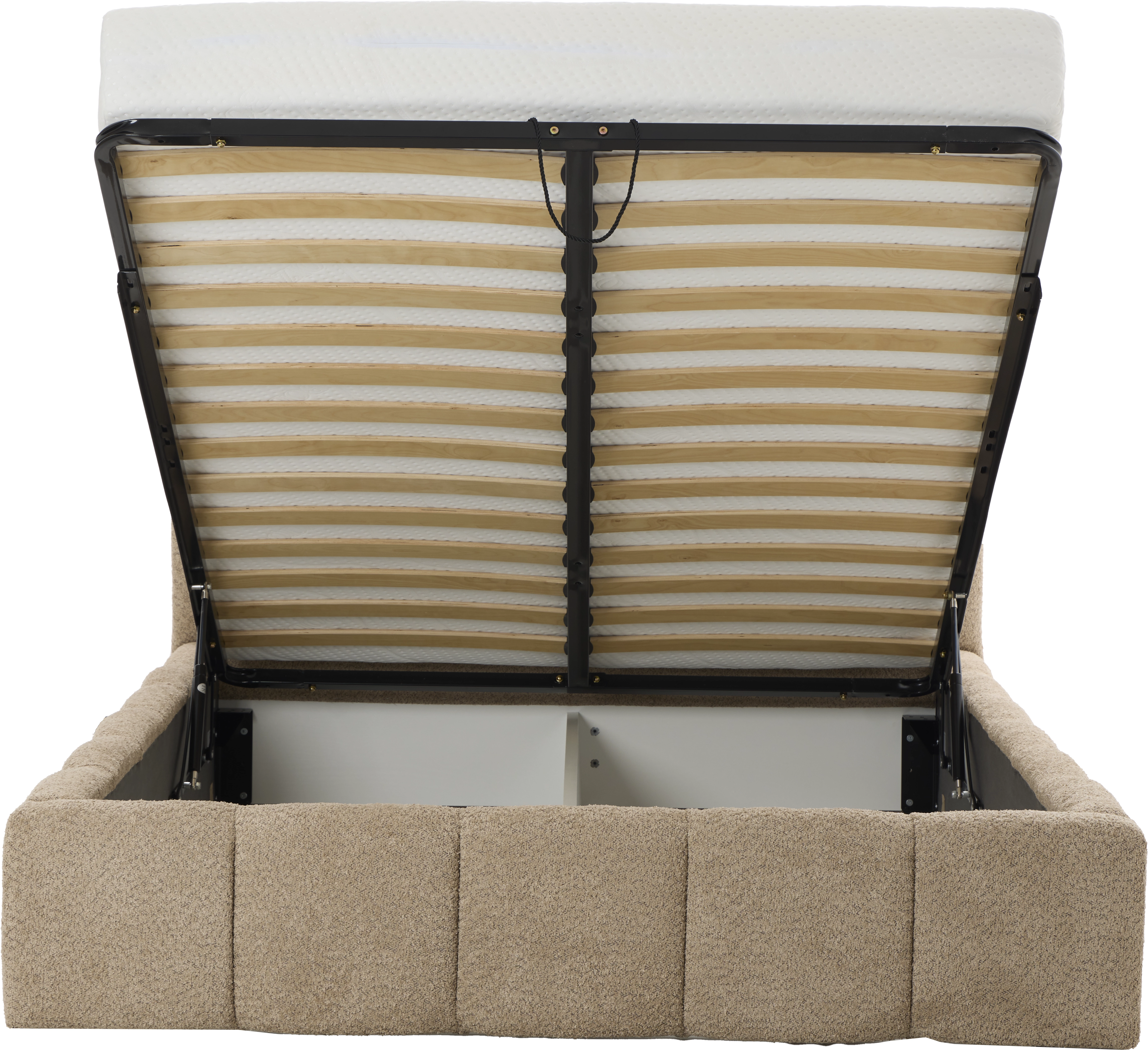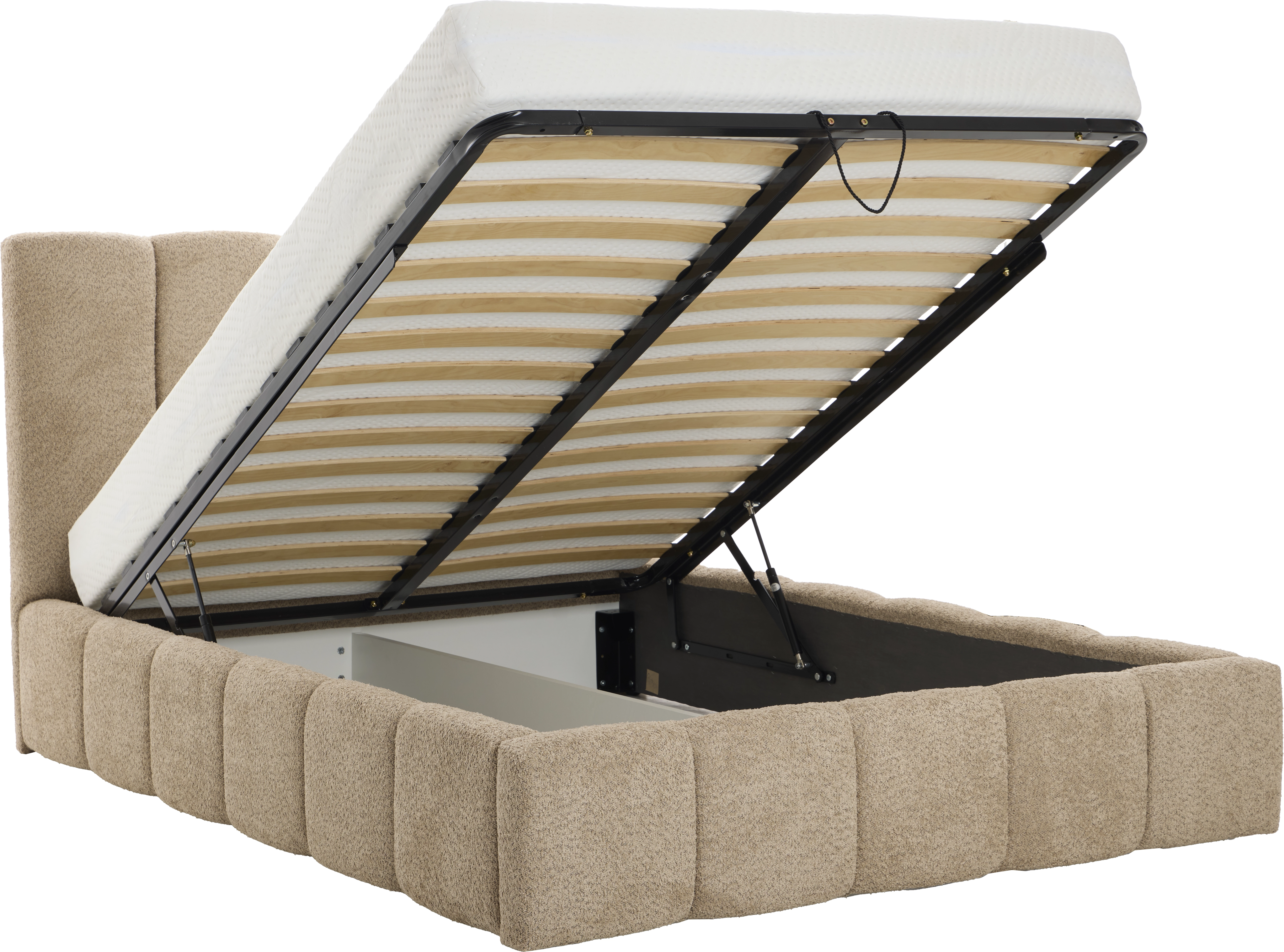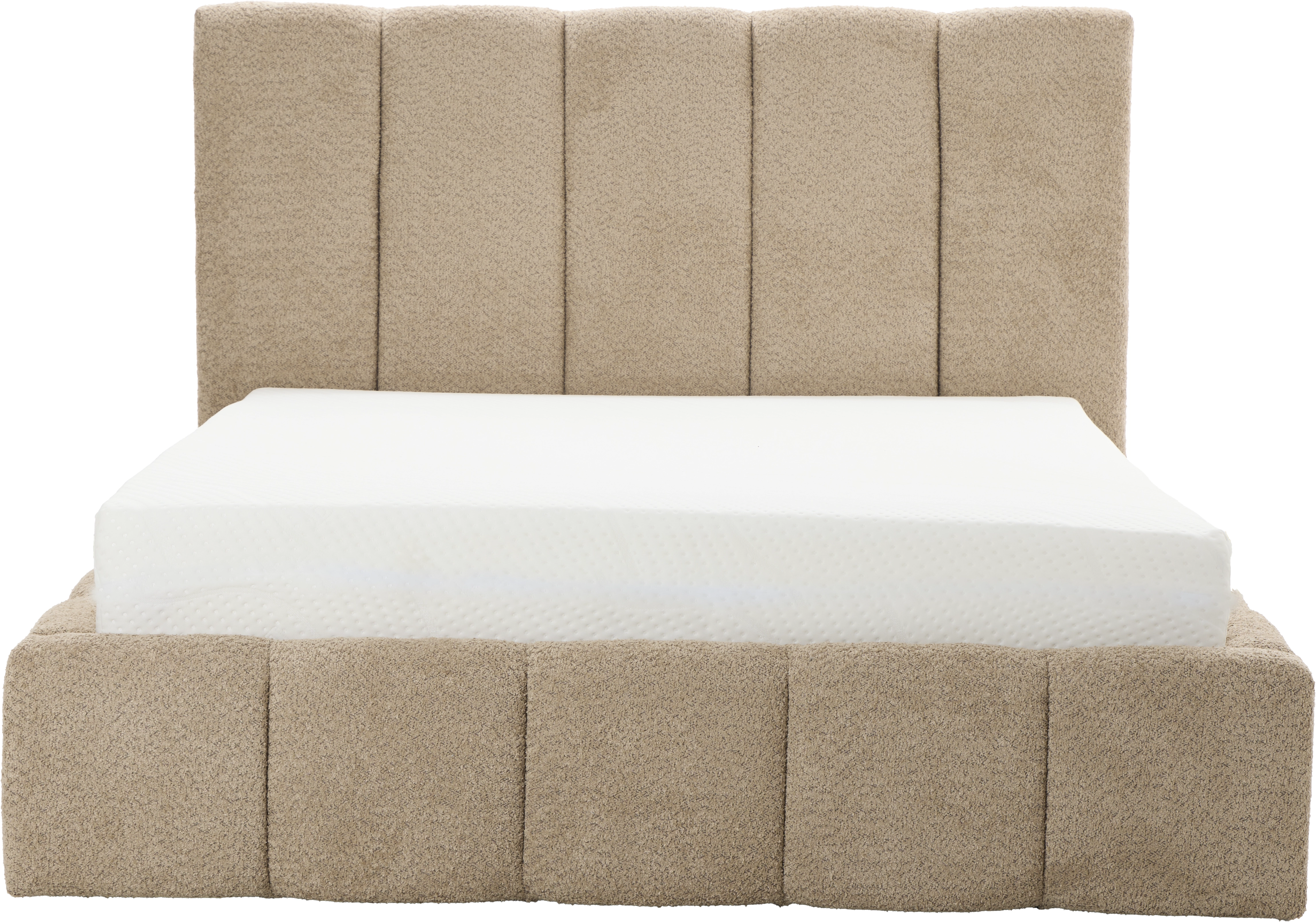 Łóżko tapicerowane Bianko 140 (boucle cappuccino) ze stelażem i pojemnikiem