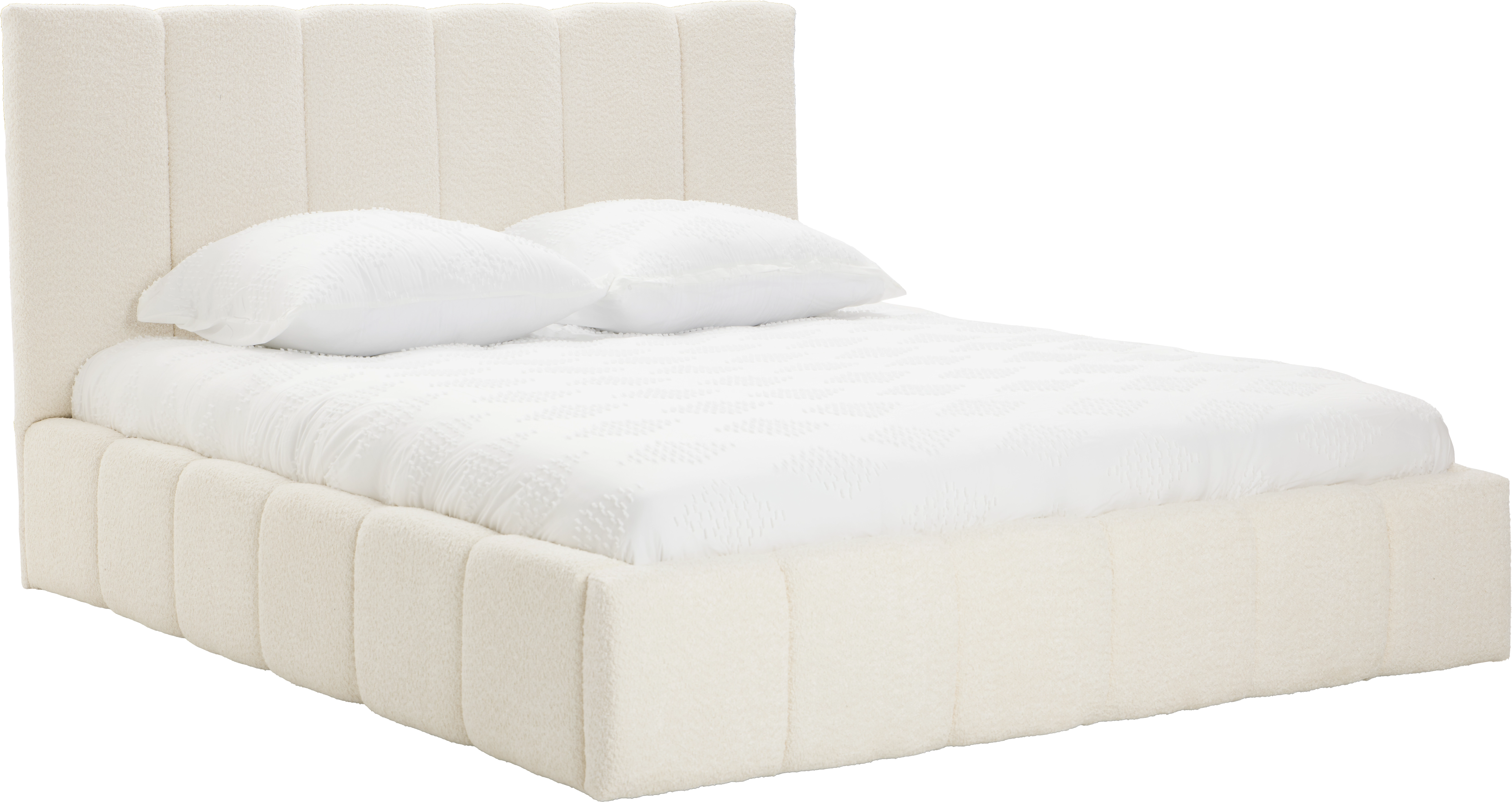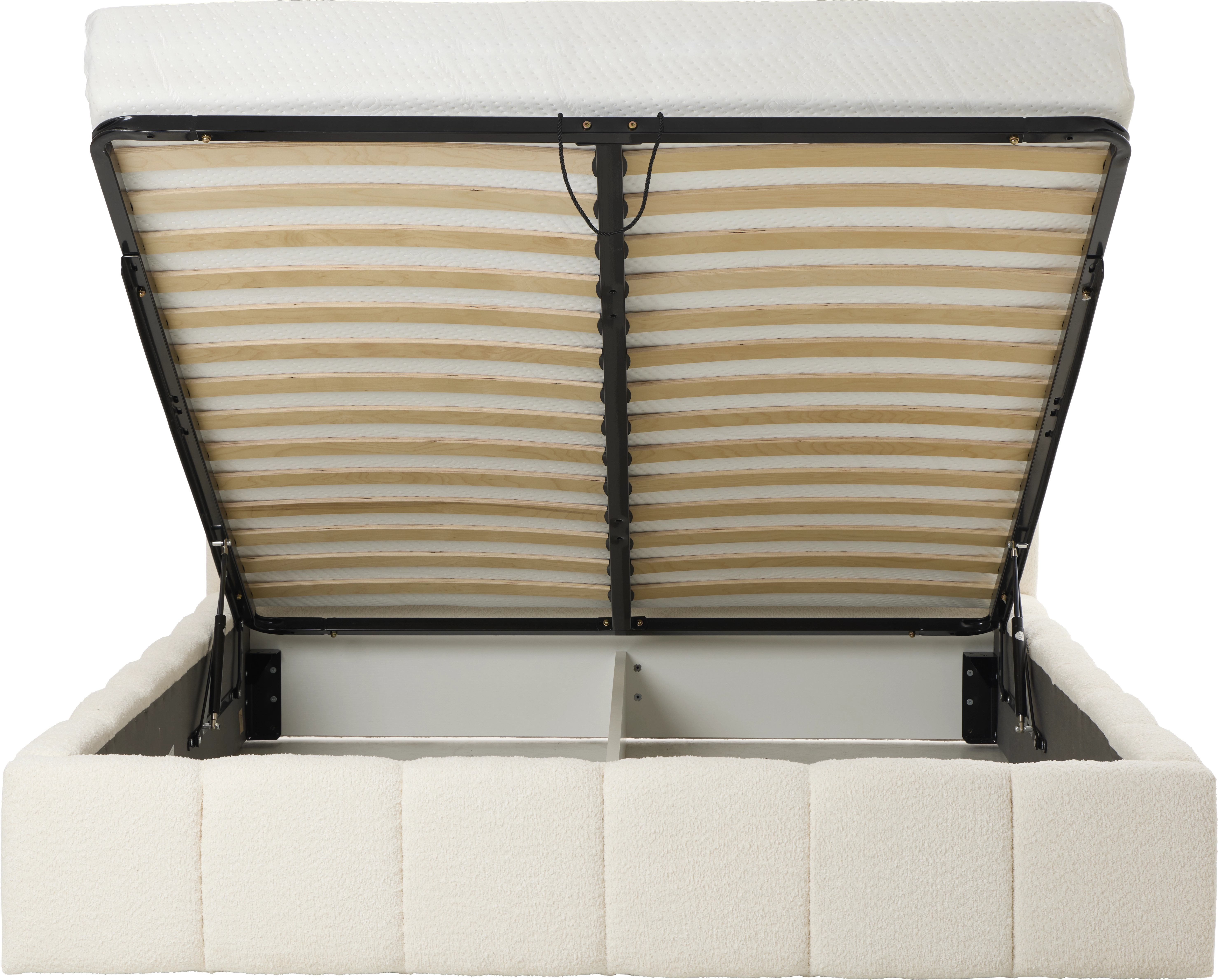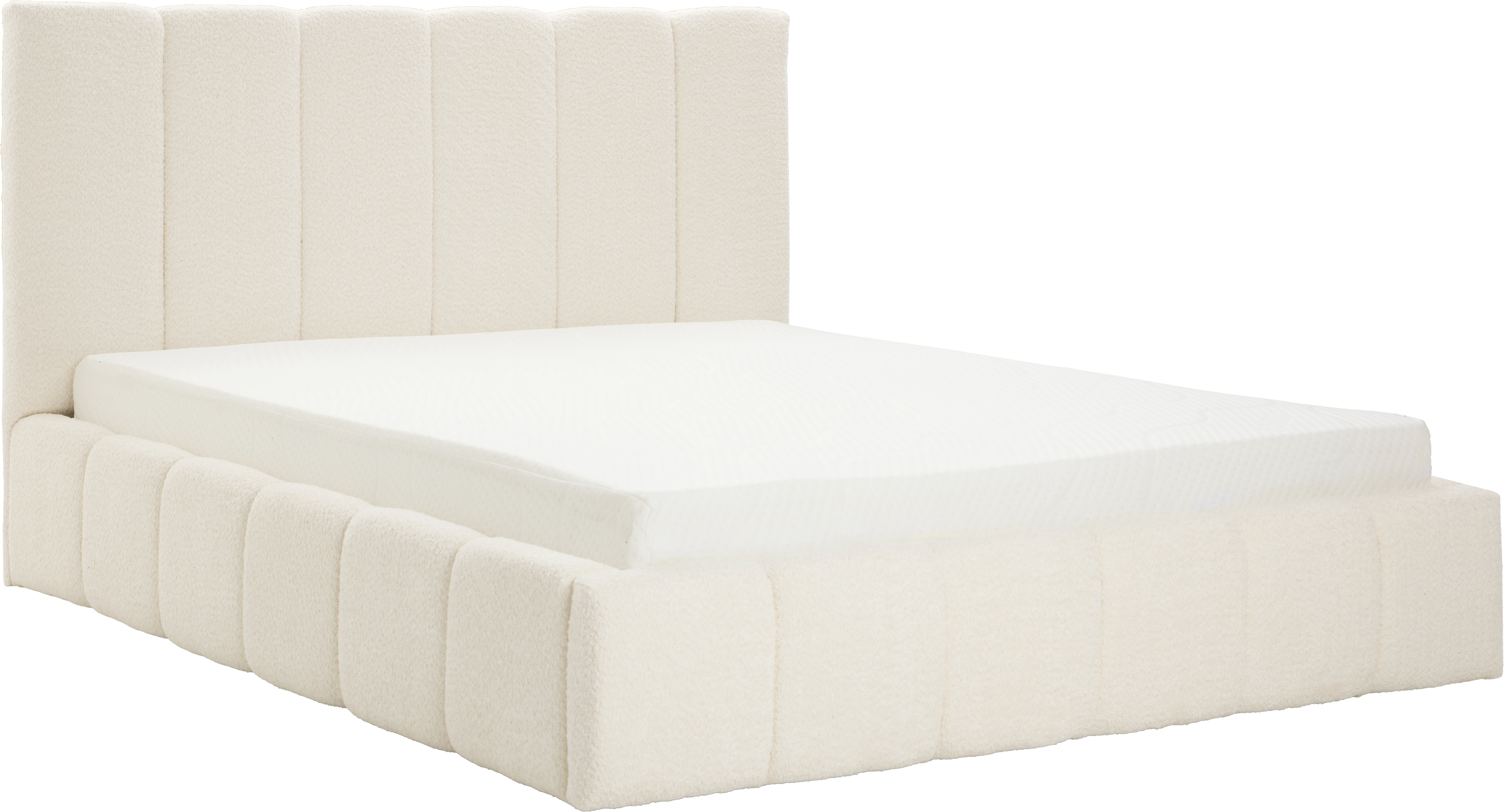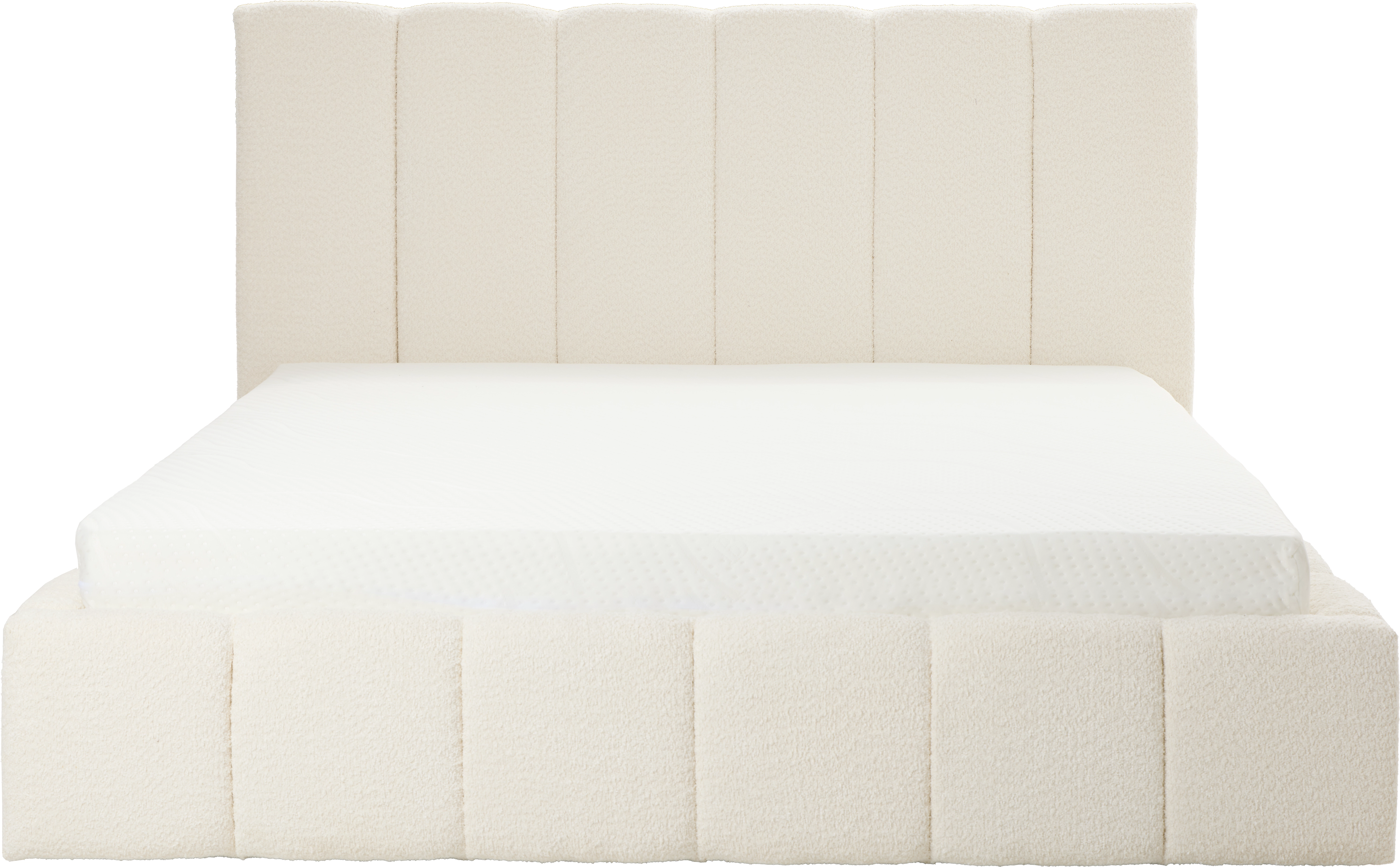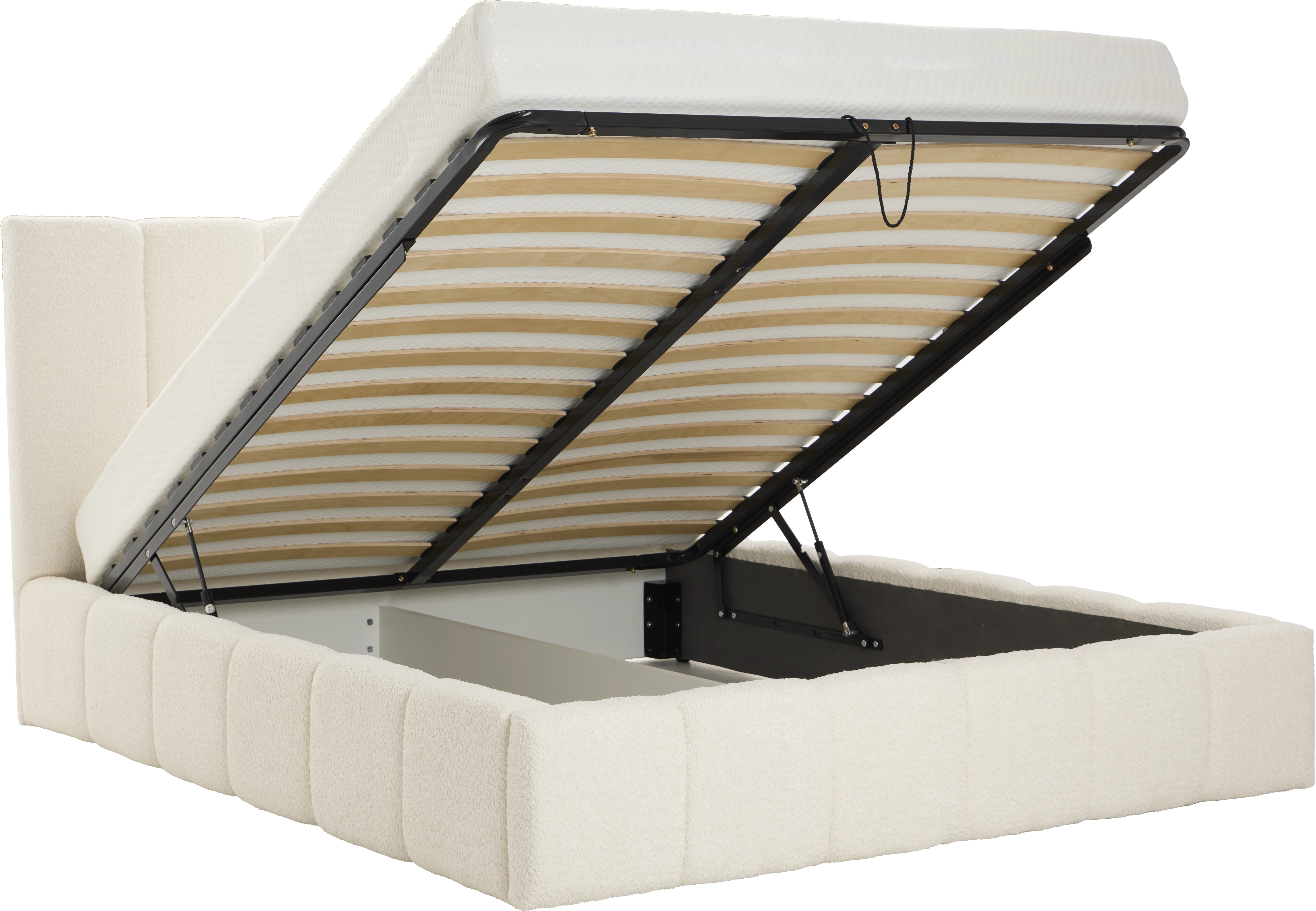Łóżko tapicerowane Bianko 160 (boucle kremowy) ze stelażem i pojemnikiem