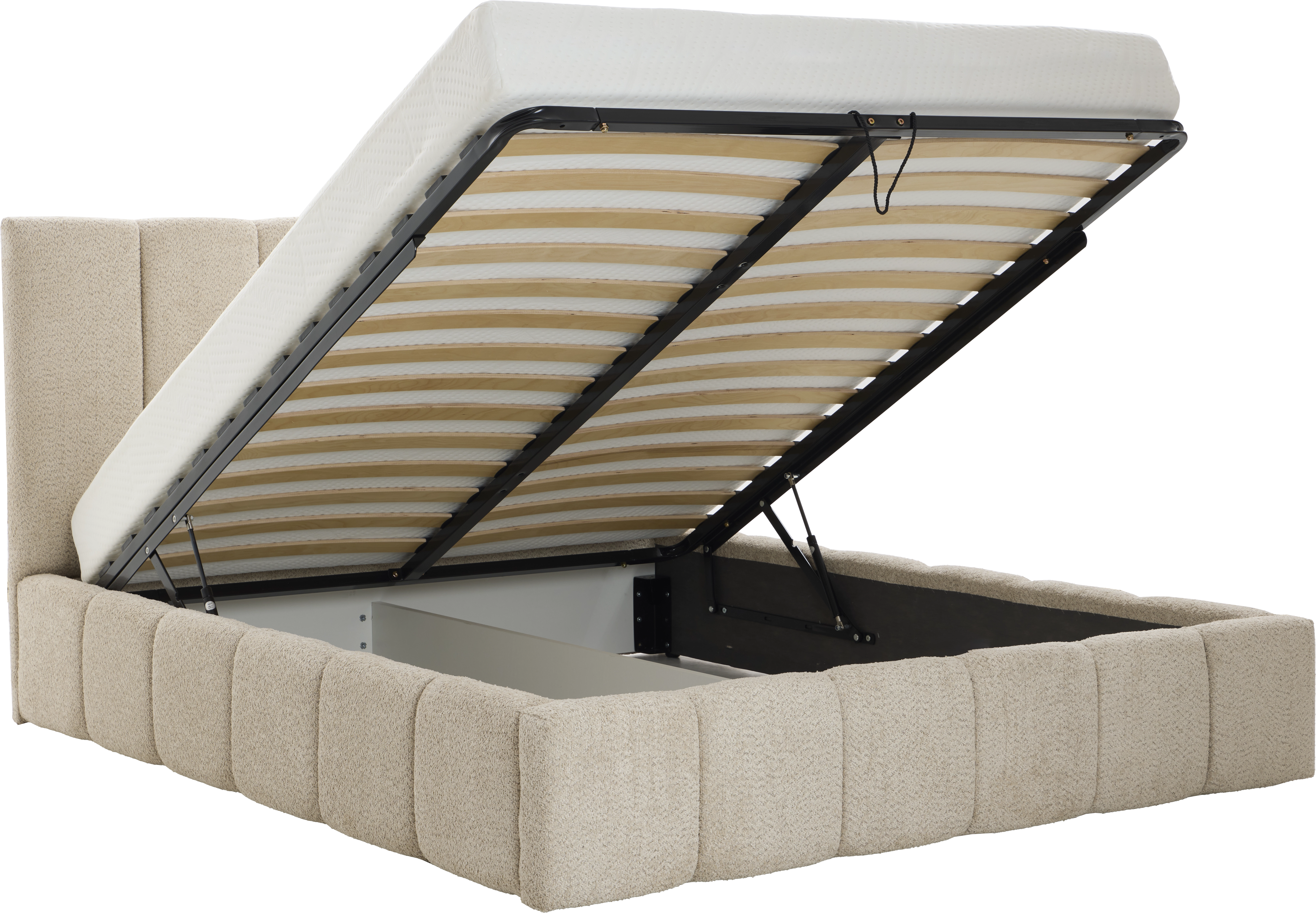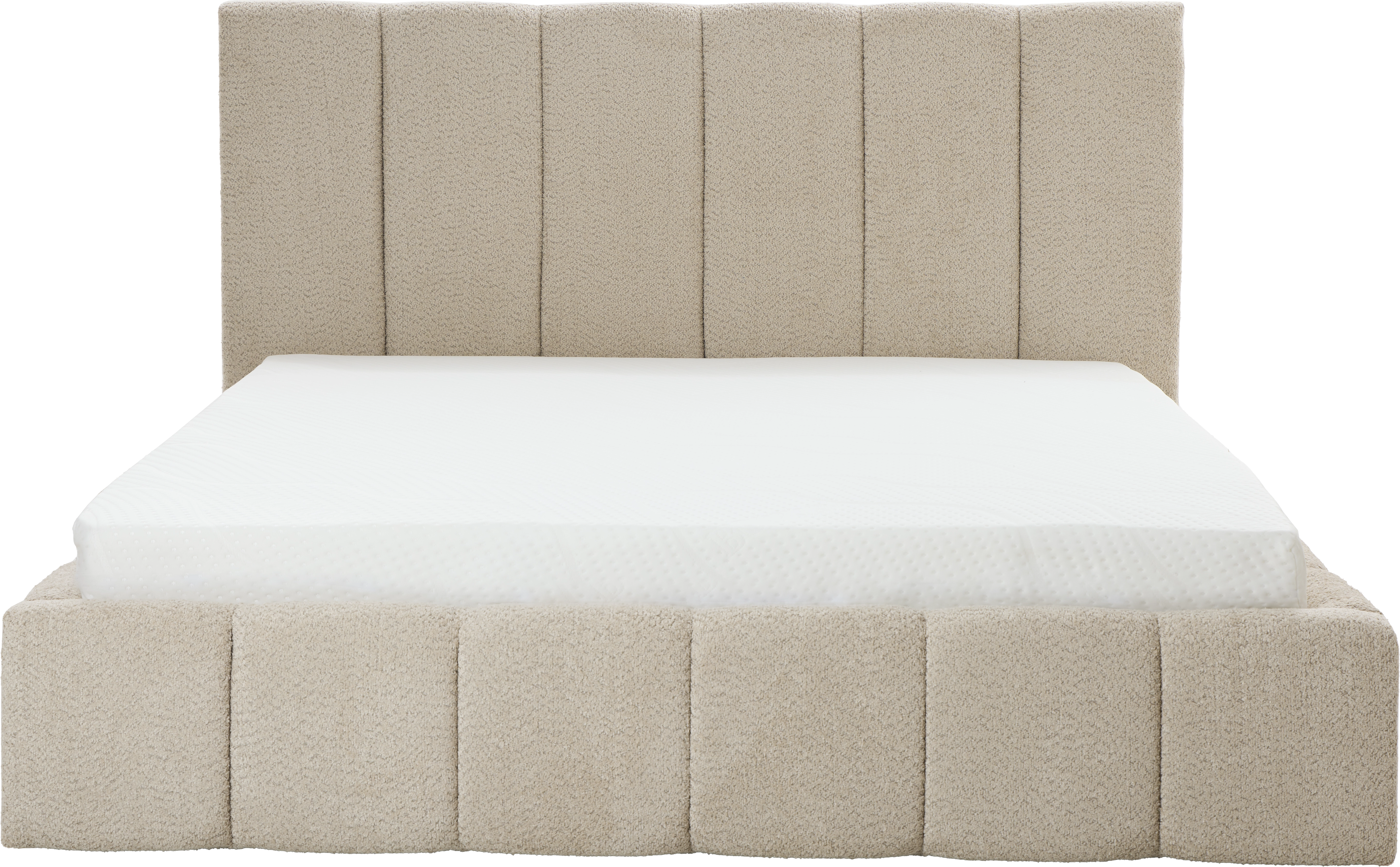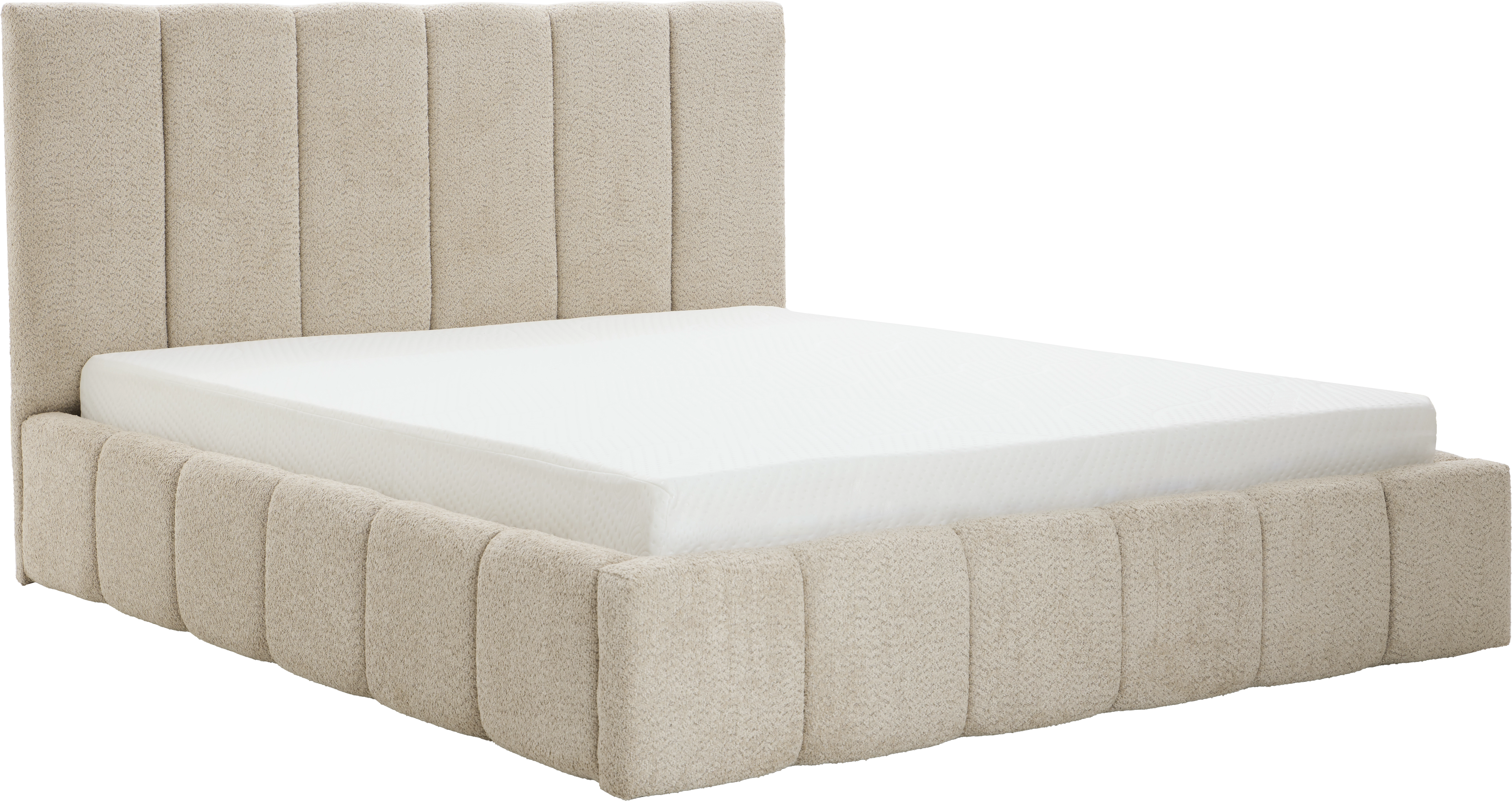 Łóżko tapicerowane Bianko 160 (boucle beż) ze stelażem i pojemnikiem