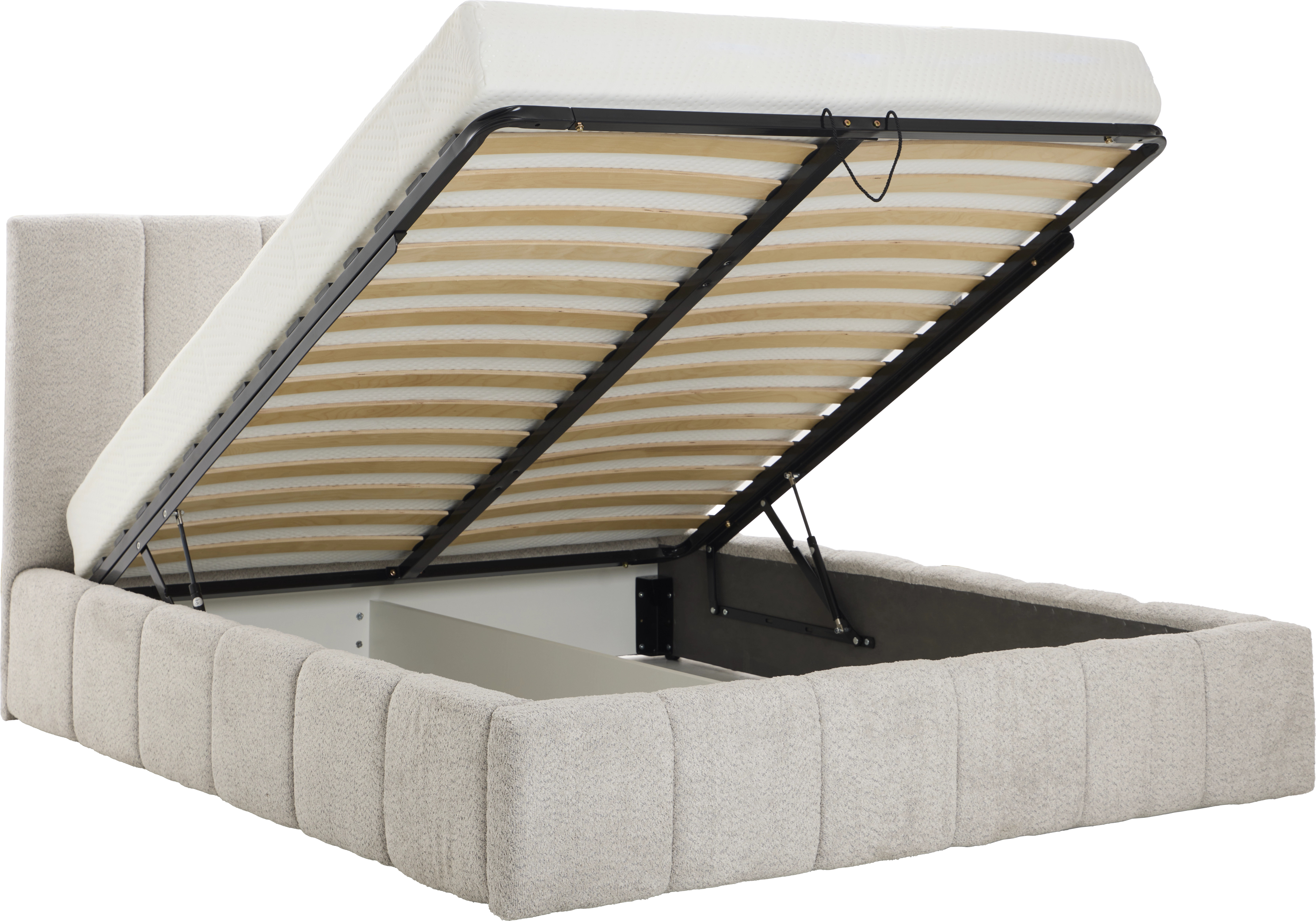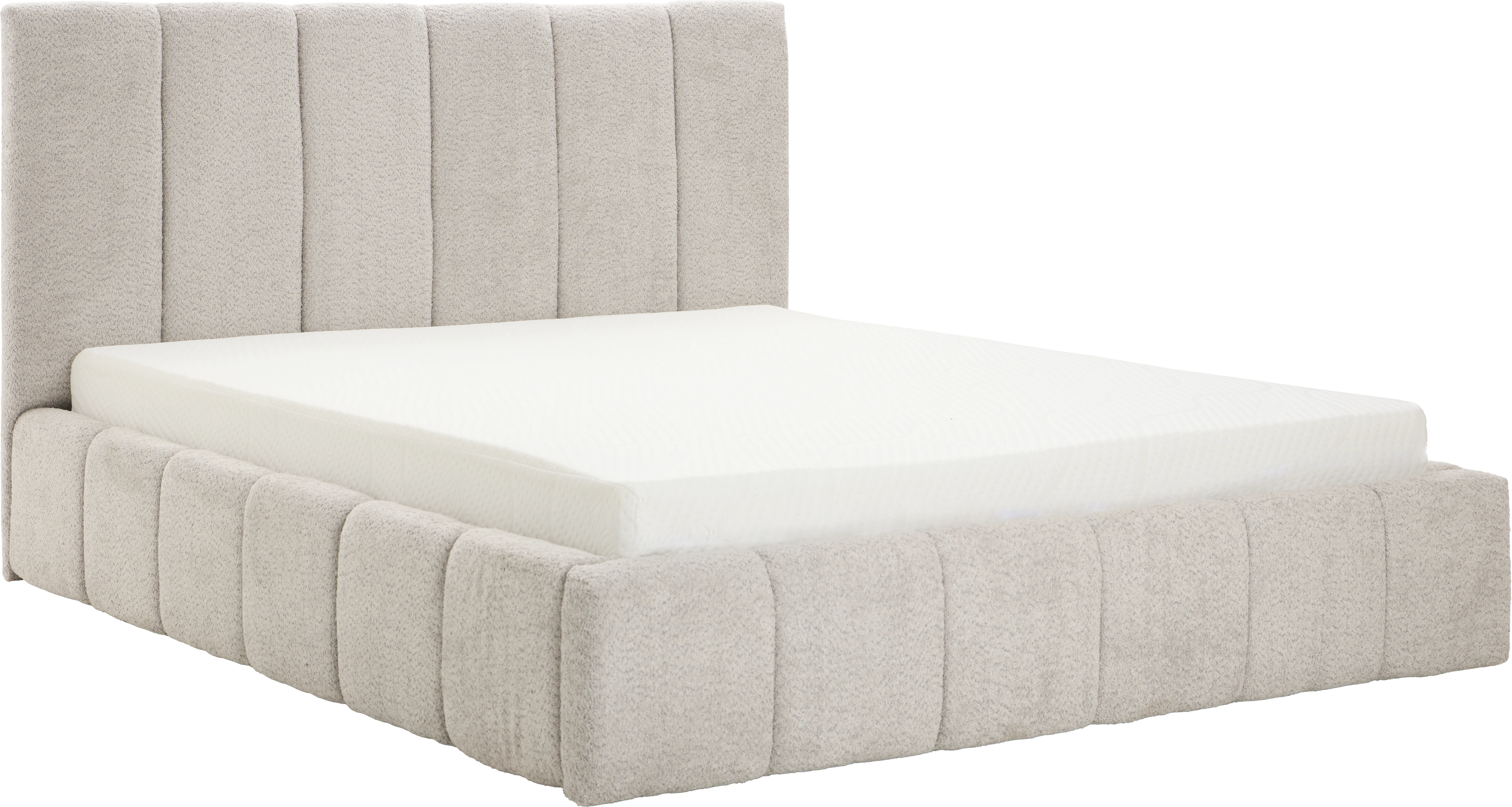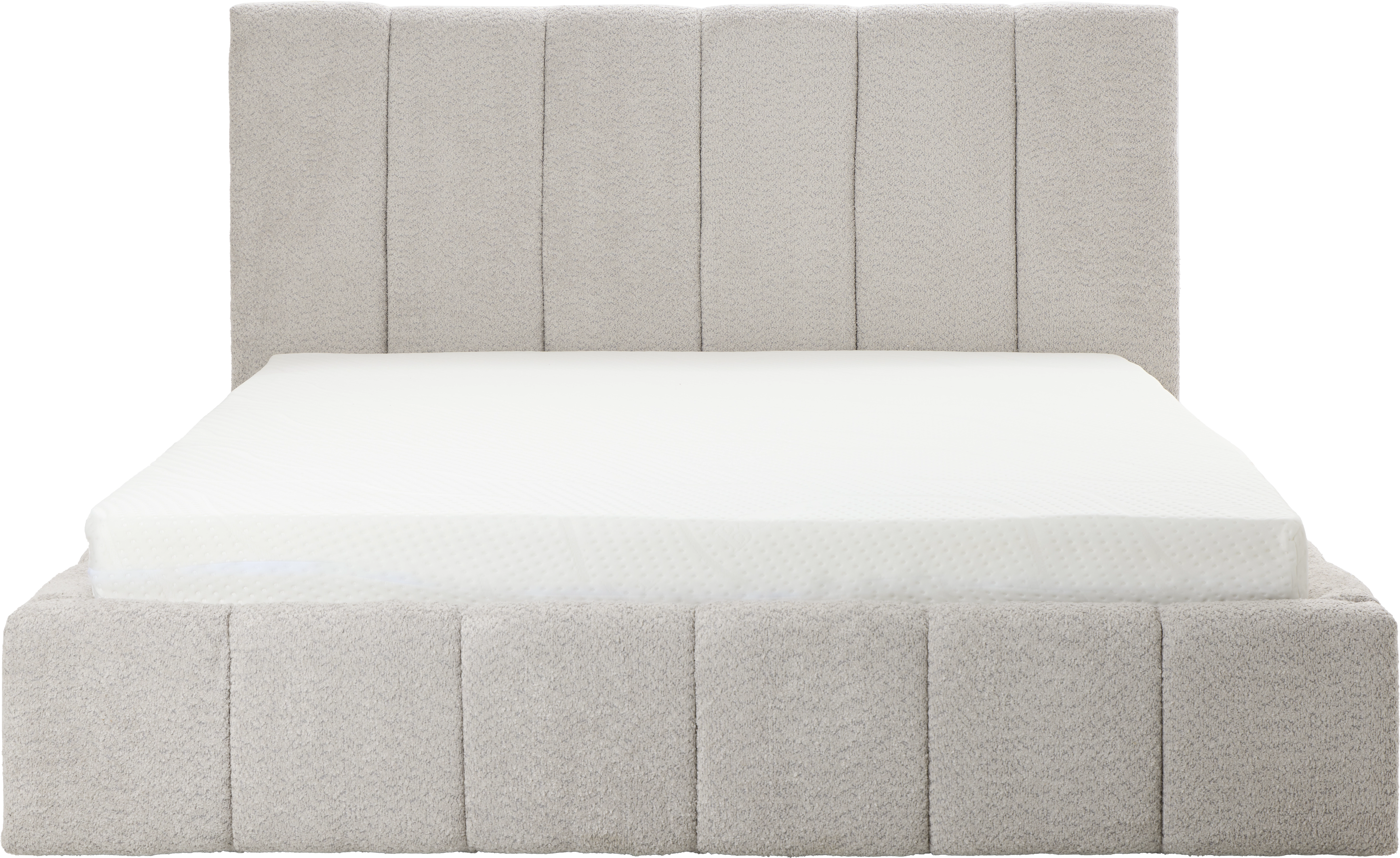 Łóżko tapicerowane Bianko 160 (boucle szary) ze stelażem i pojemnikiem